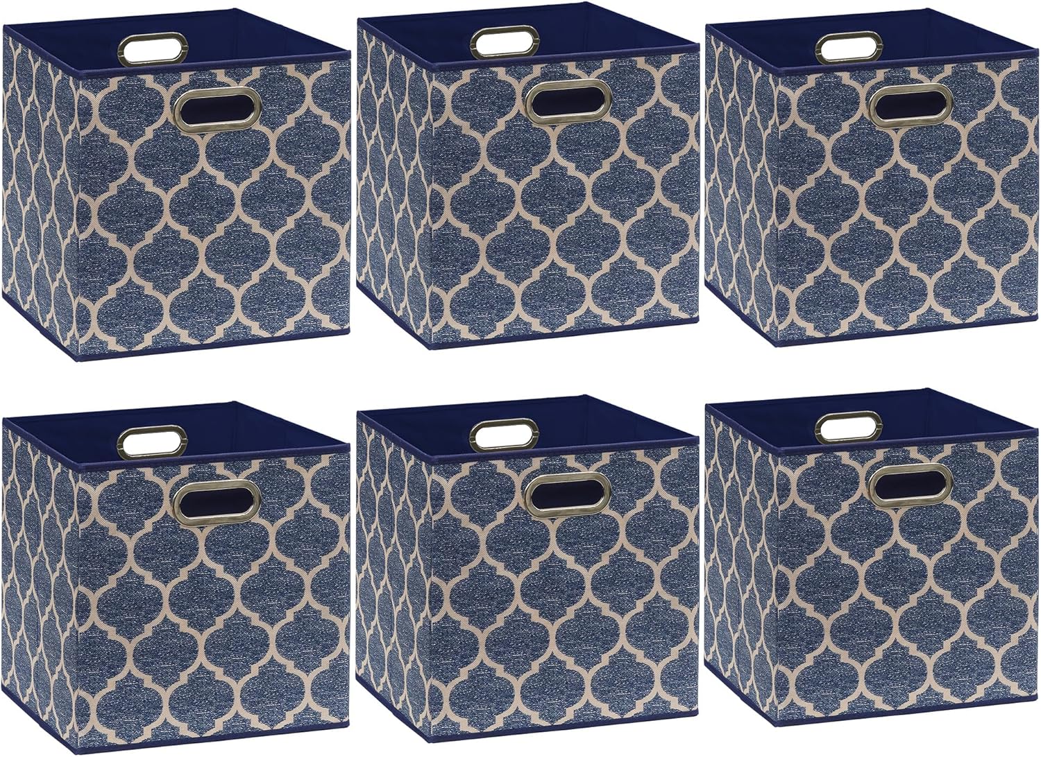 SIMPLE HOUSEWARE 11-Inch Collapsible Fabric Cube Storage Bin with Handles, Printed Design, 6 Pack, Steel Blue
