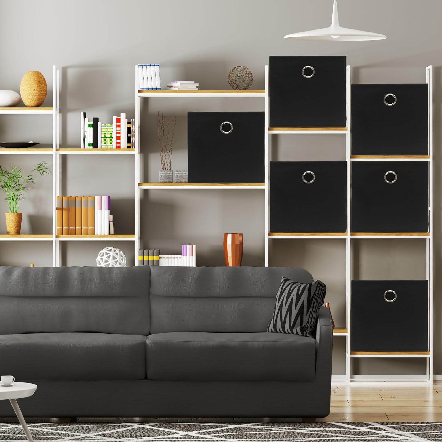 - Space-Saving Design: Collapsible fabric bins with a stylish print; foldable for compact storage when not in use