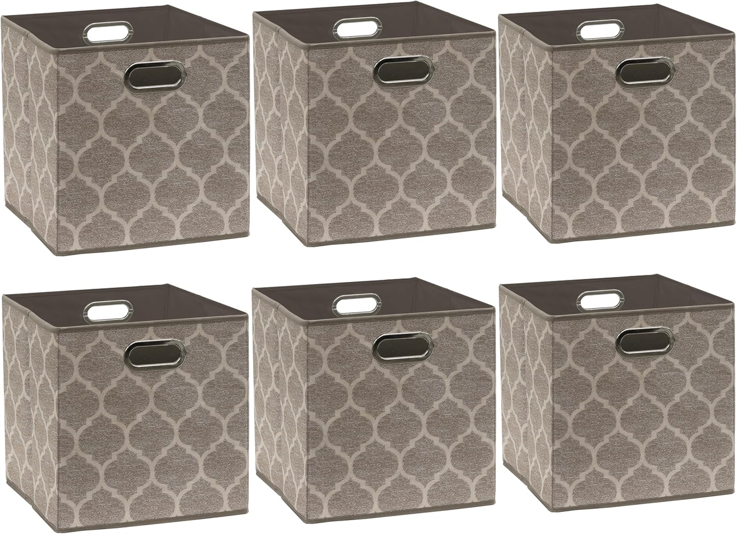 SIMPLE HOUSEWARE 11-Inch Collapsible Fabric Cube Storage Bin with Handles, Printed Design, 6 Pack, Beige