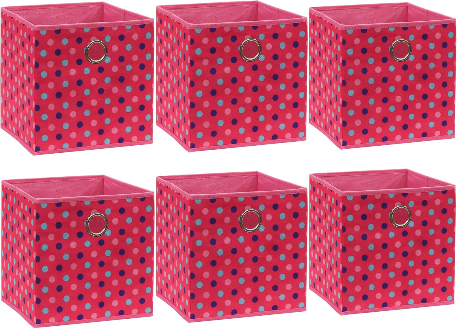 SIMPLE HOUSEWARE 10-Inch Collapsible Fabric Cube Storage Bin with Handles, Printed Design, 6 Pack, Pink