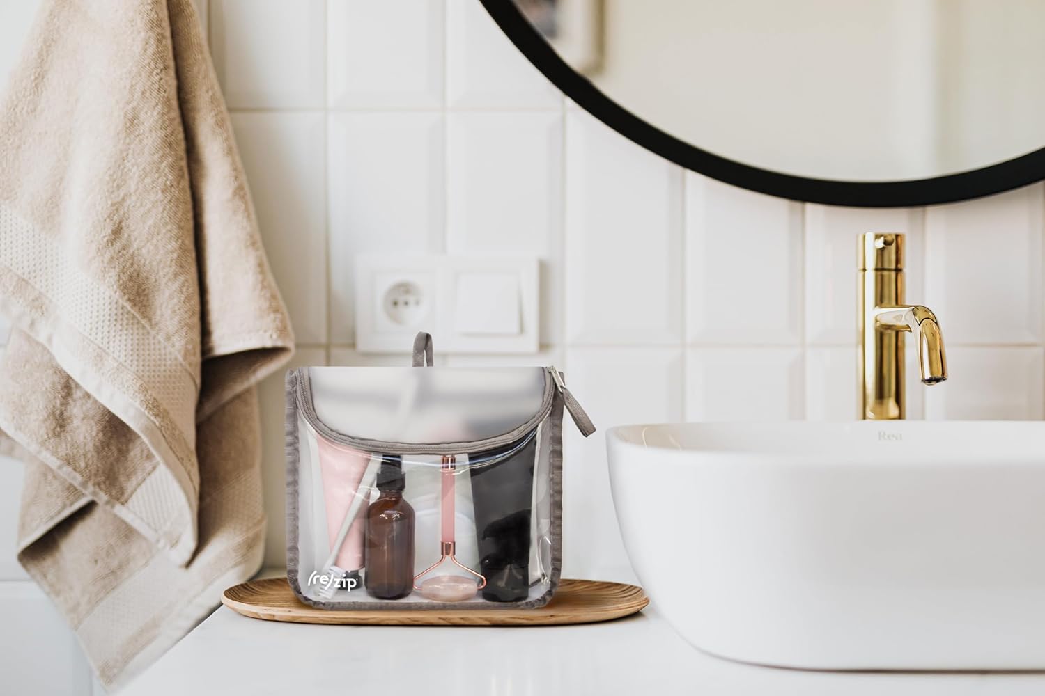 (re)zip Zippered TSA-Compliant Travel Quart Bag | Zippered, Reusable, Storage Bag for Toiletries, Makeup, Suitcase Organization | BPA-Free, Food Grade, Machine Washable (Clear, Gray Piping)