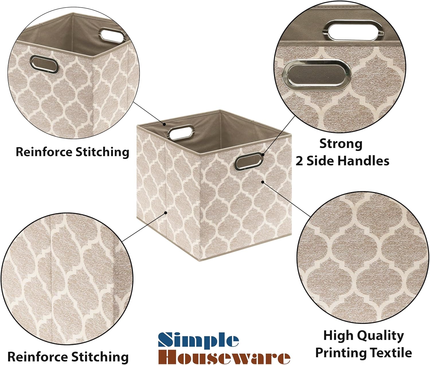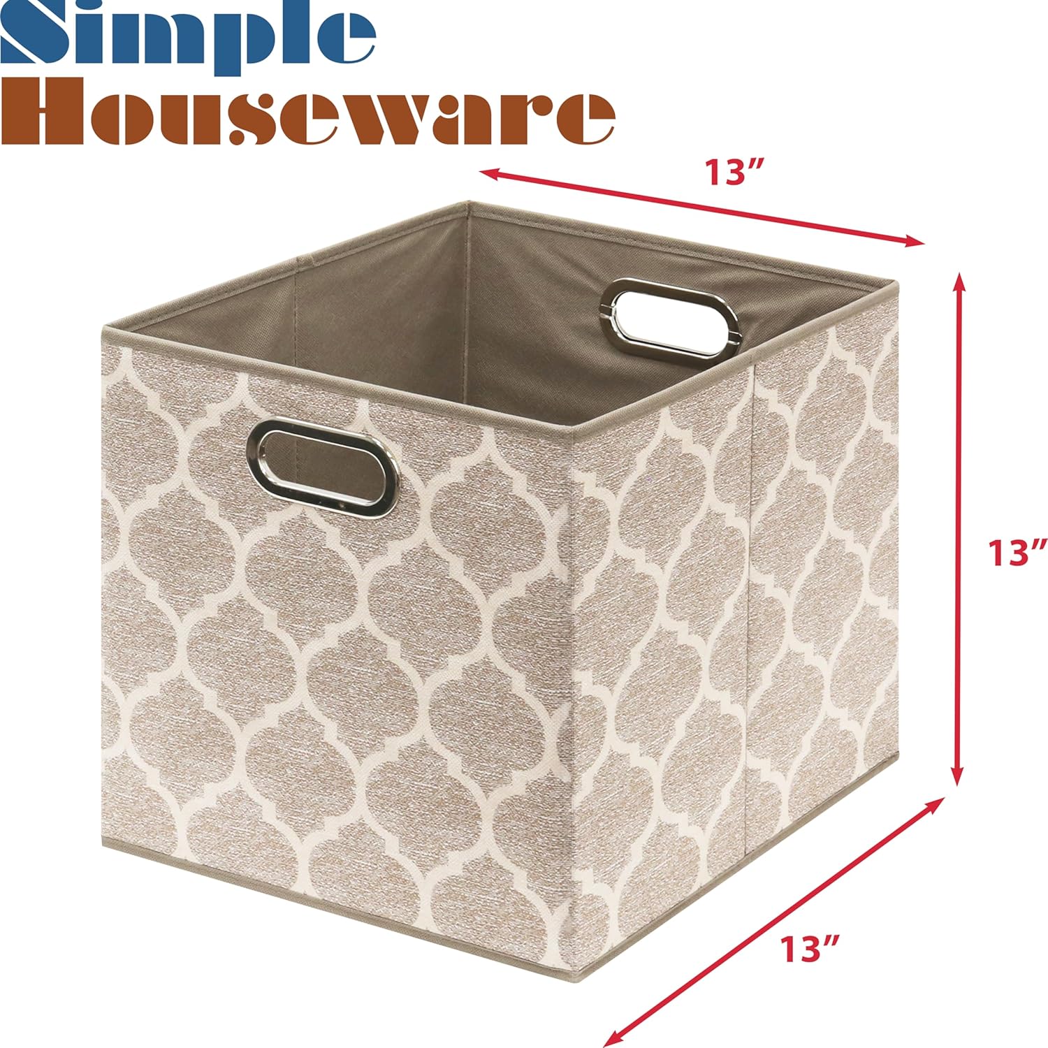 SIMPLE HOUSEWARE 13-Inch Collapsible Fabric Cube Storage Bin with Handles, Printed Design, 3 Pack, Beige