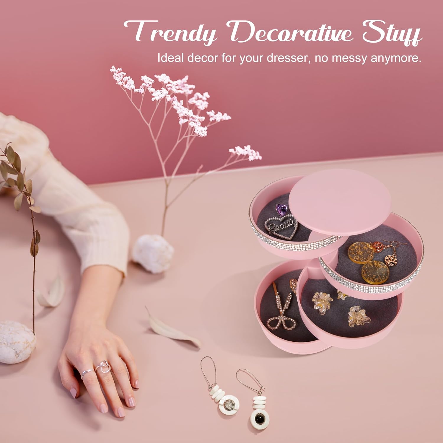 - ♥【Rotating Jewelry Organizer】- Simple and modern style, rotate into any look you like, excellent dressing table decor; it's a compact cylinder when closed, and isolate dust to better maintain the luster of jewelry.
