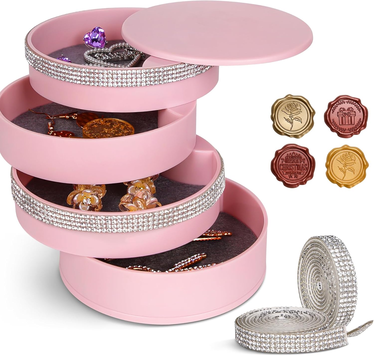 - ♥【Create Your Own Masterpiece】- Packaging includes: 2 x rhinestone ribbons, 4 x wax seals stickers and jewelry box, that unleash your creativity and design a one-of-a-kind Jewelry Box. Crafted with love and attention to detail, it's a precious keepsake that captures special memories.