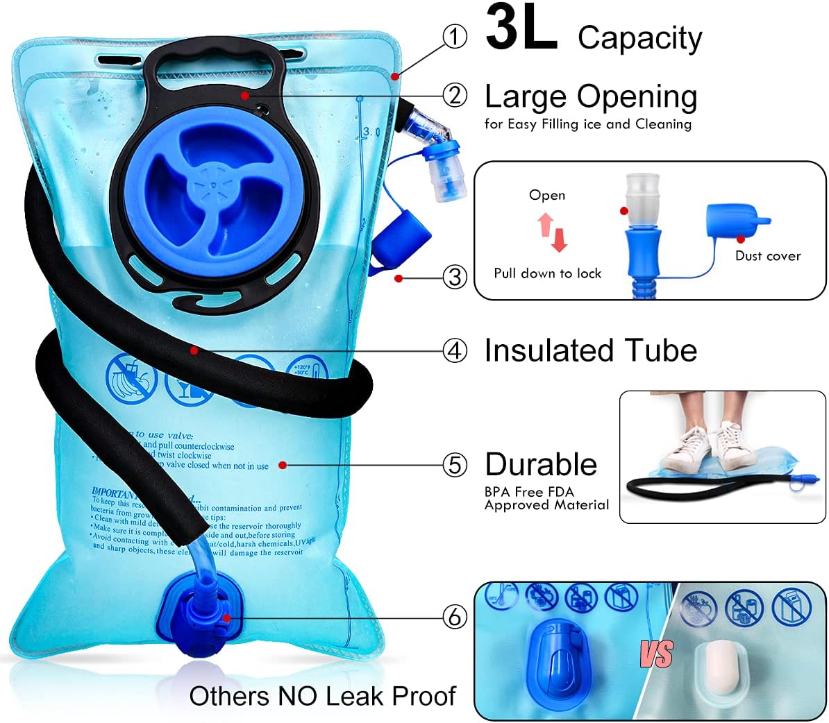 - đ ăPERFECT OUTDOOR HYDRATION GEAR ă- Includes Large Capacity of 100 Ounce ( 3 Liter ) BPA FREE food grade hydration bladder, test report will be sent to your e-mail. Any questions would be taken care and replied anytime. Padded shoulder straps, breathable system and lightweight design are the perfect tool for outdoor sports. Perfect hiking backpack for men, women, girls, boys.