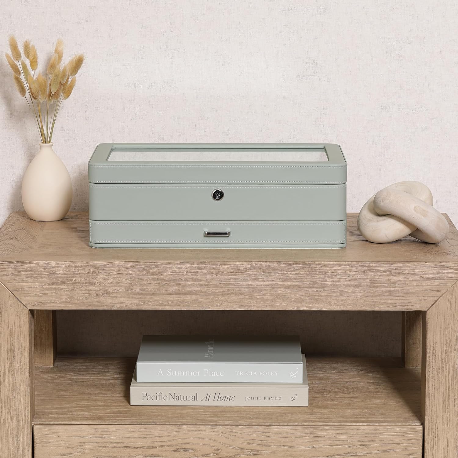 ROTHWELL Luxury Watch Box for 12 Watches – PU Leather Watch Box with Real Glass Lid – Slide out Accessory Drawer with Multiple Compartments (Seafoam)