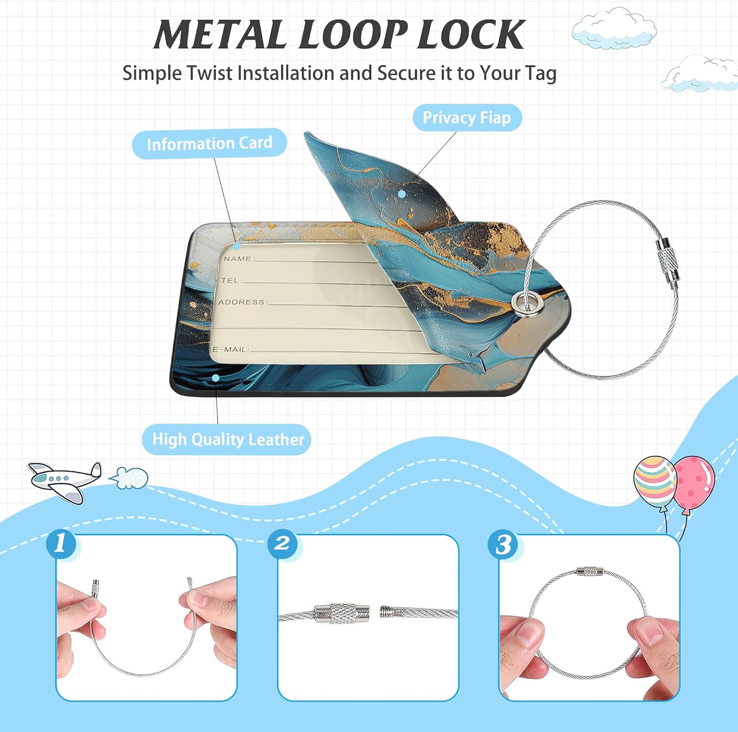 - 【Perfect Gift Choice】: Our exquisite and stylish luggage tags are not only suitable for suitcases, travel bags, and sports equipment but also make for the perfect gift for your family, friends, and colleagues on occasions like Thanksgiving, Valentine's Day, Christmas, cruises, honeymoons and weddings.
