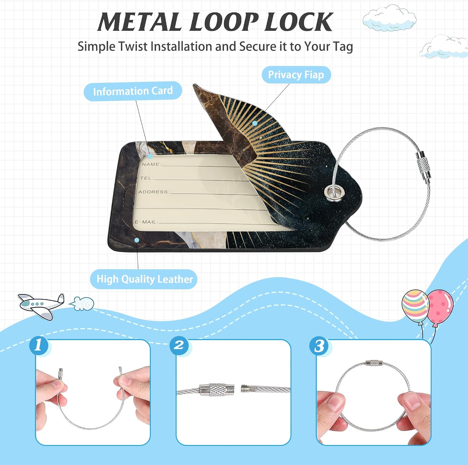 - 【Perfect Gift Choice】: Our exquisite and stylish luggage tags are not only suitable for suitcases, travel bags, and sports equipment but also make for the perfect gift for your family, friends, and colleagues on occasions like Thanksgiving, Valentine's Day, Christmas, cruises, honeymoons and weddings.