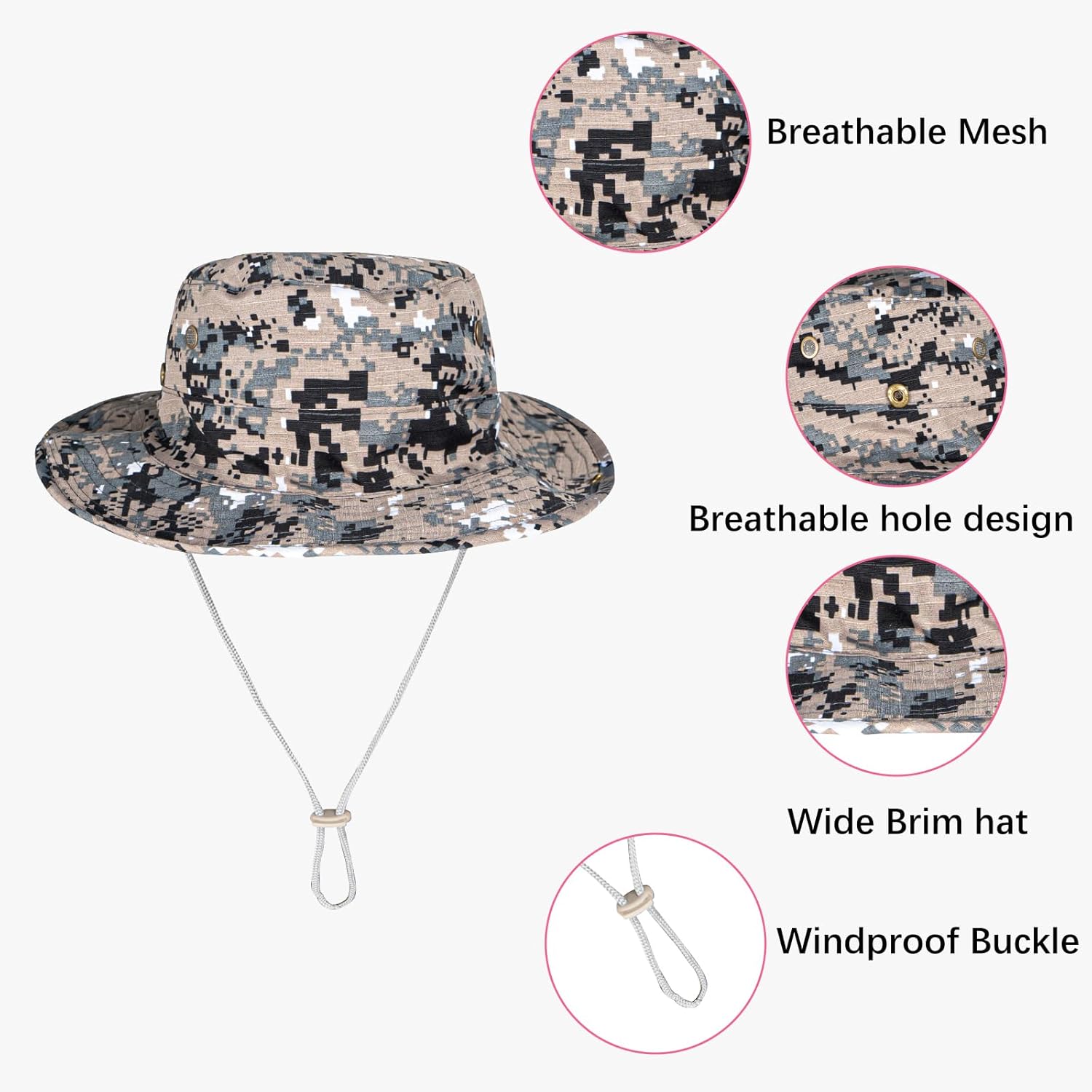- ADJUSTABLE DRAWSTRING: Adjustable chin drawstring for fixing the sun hat, especially in windy days.
