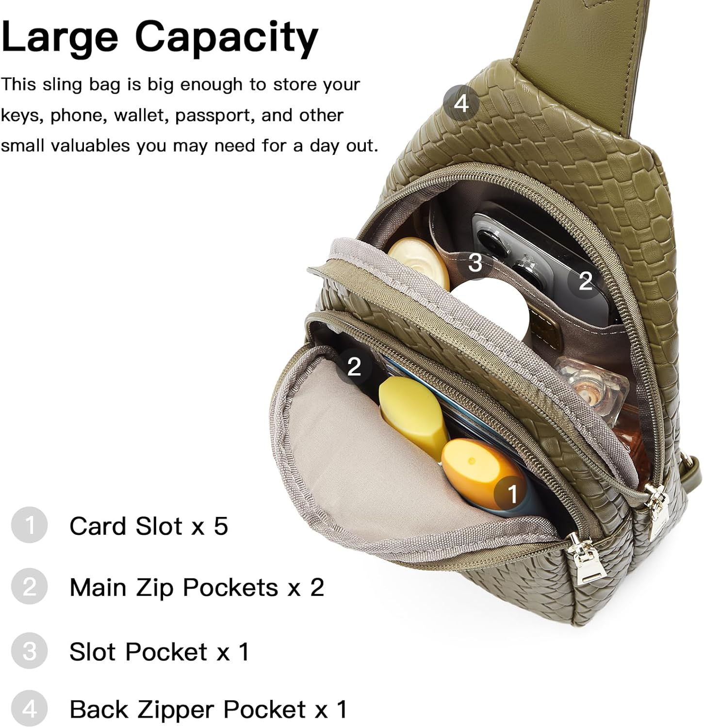 - Durable Material: Sling bag for women made with premium faux leather and odorless, both functional and fashionable. This crossbody fanny pack allow you to carry around all your essentials hands-free while keeping your outfit look chic and well-matched