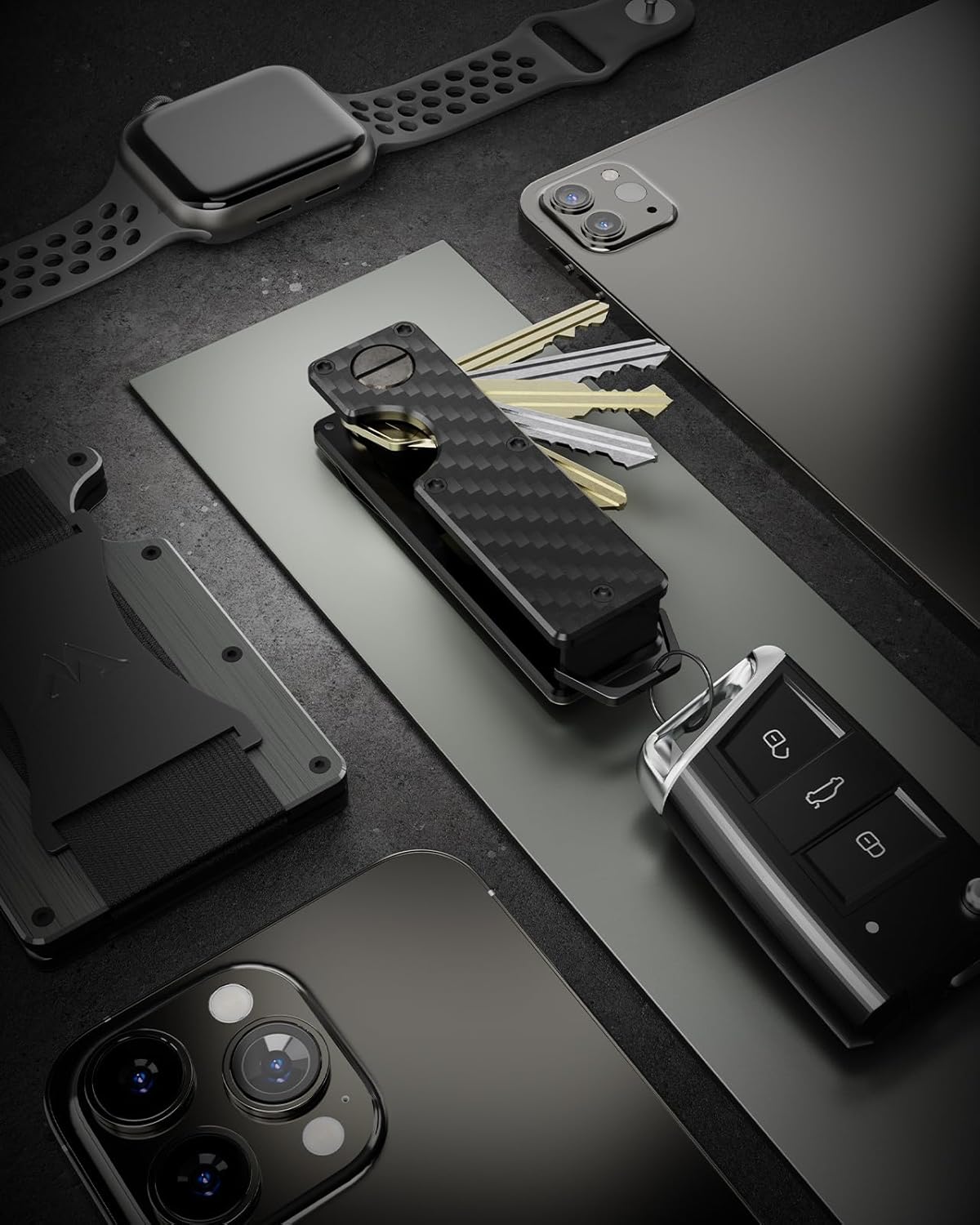 • MINIMALIST KEY ORGANIZER - Experience the KEYMARX Compact Keycase – a sleek solution that eliminates jingling keys, prevents thigh discomfort, and shields your wallet, phone, and accessories from scratches.