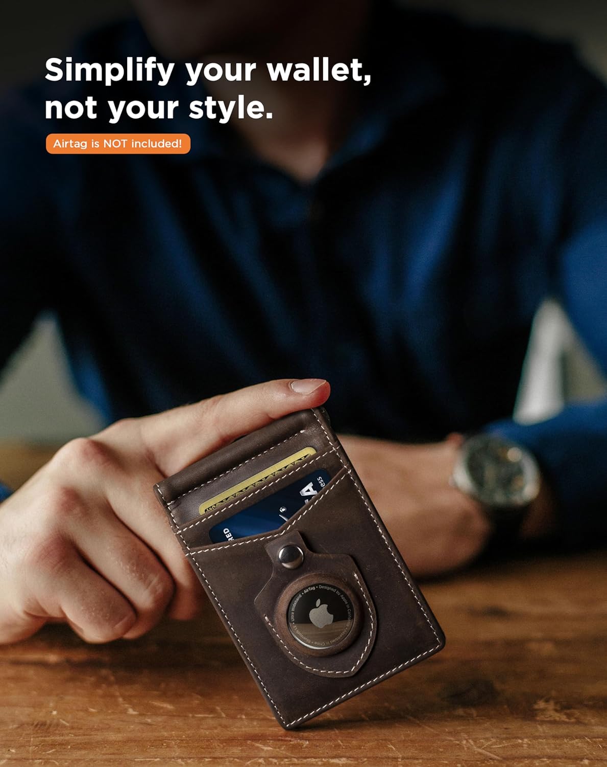 - Minimalist Airtag Wallet - Beautifully crafted from full grain leather, it sports a minimalist design for men who want a slim leather wallet without sacrificing functionality. The ultra-thin wallet is designed to fit directly in the pocket for easy carrying.