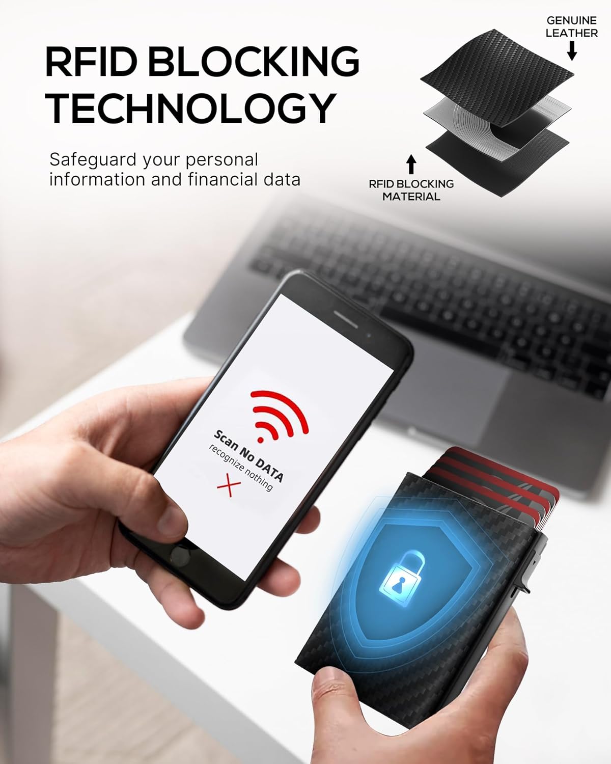 - 【ADVANCED RFID BLOCKING】 Safeguard your personal and financial information with confidence. The secure wallet features cutting-edge RFID blocking technology, effectively creating a shield against unwanted digital intrusion, leaving you in control of your data.