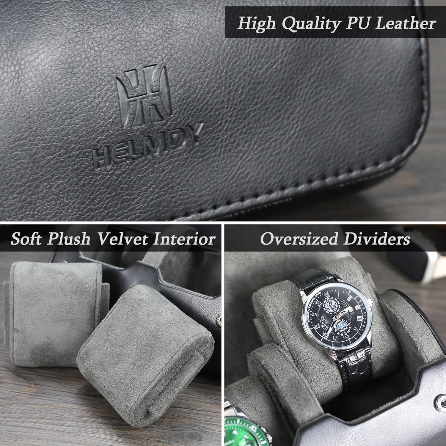 - EXCELLENT PROTECTION: Soft plush velvet interior prevents scratches and damage, with individual compartments and solid dividers for each watch. Slide-in watch cushion design ensures a secure fit and ultimate safety for your luxury timepieces.