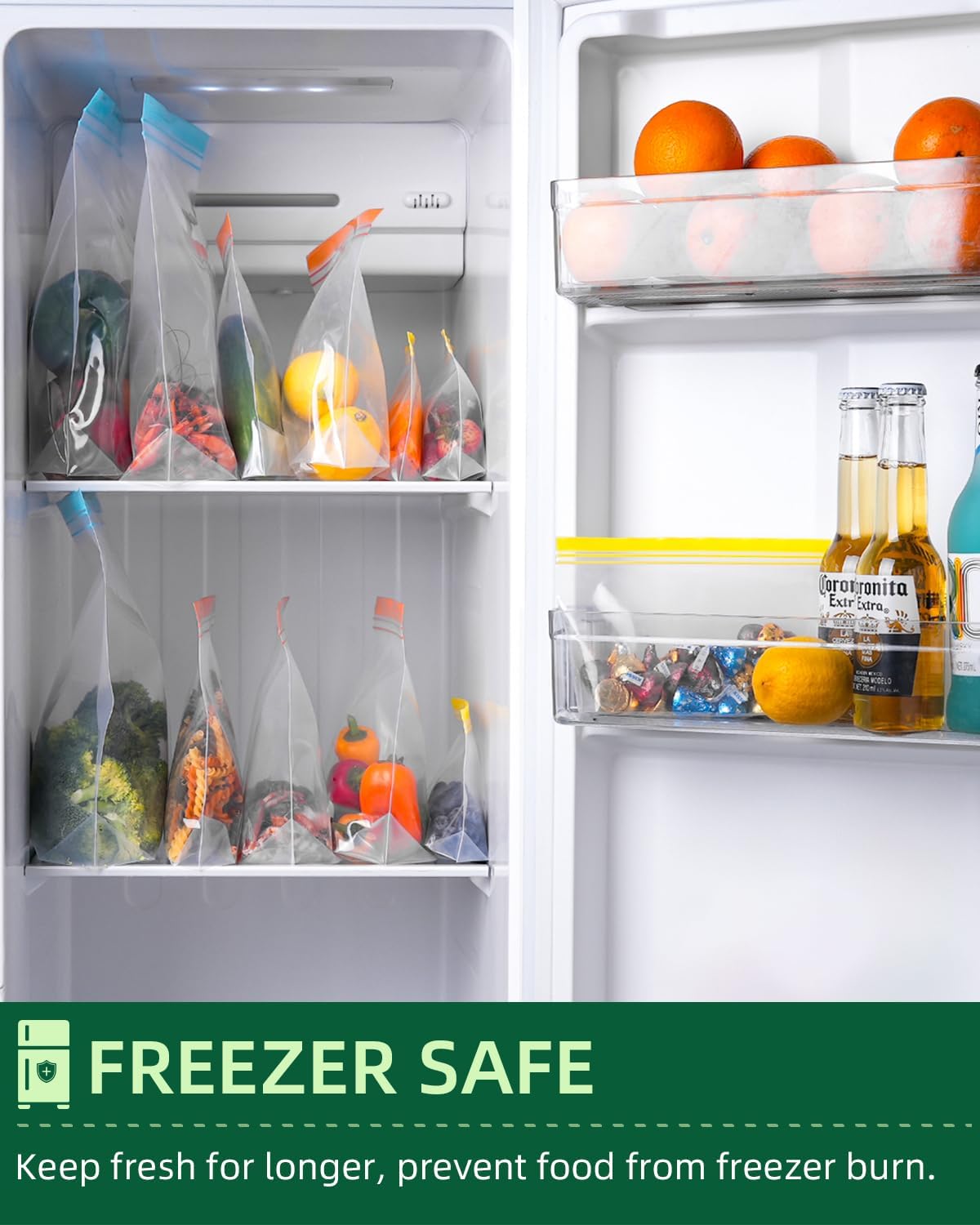 - FREEZER & DISHWASHER SAFE, MICROWAVE FRIENDLY: Thanks to innovative upgrades to materials , the reusable gallon freezer bags are dishwasher safe, freezer safe and microwave friendly. The freezer bags reusable storage can lock out freezer burn while keeping food fresh and full of taste, perfect for freezing meat, chicken, fish, fruits, and vegetables. Please allow steam to escape when microwaving and don't microwave for more than 1 minute.