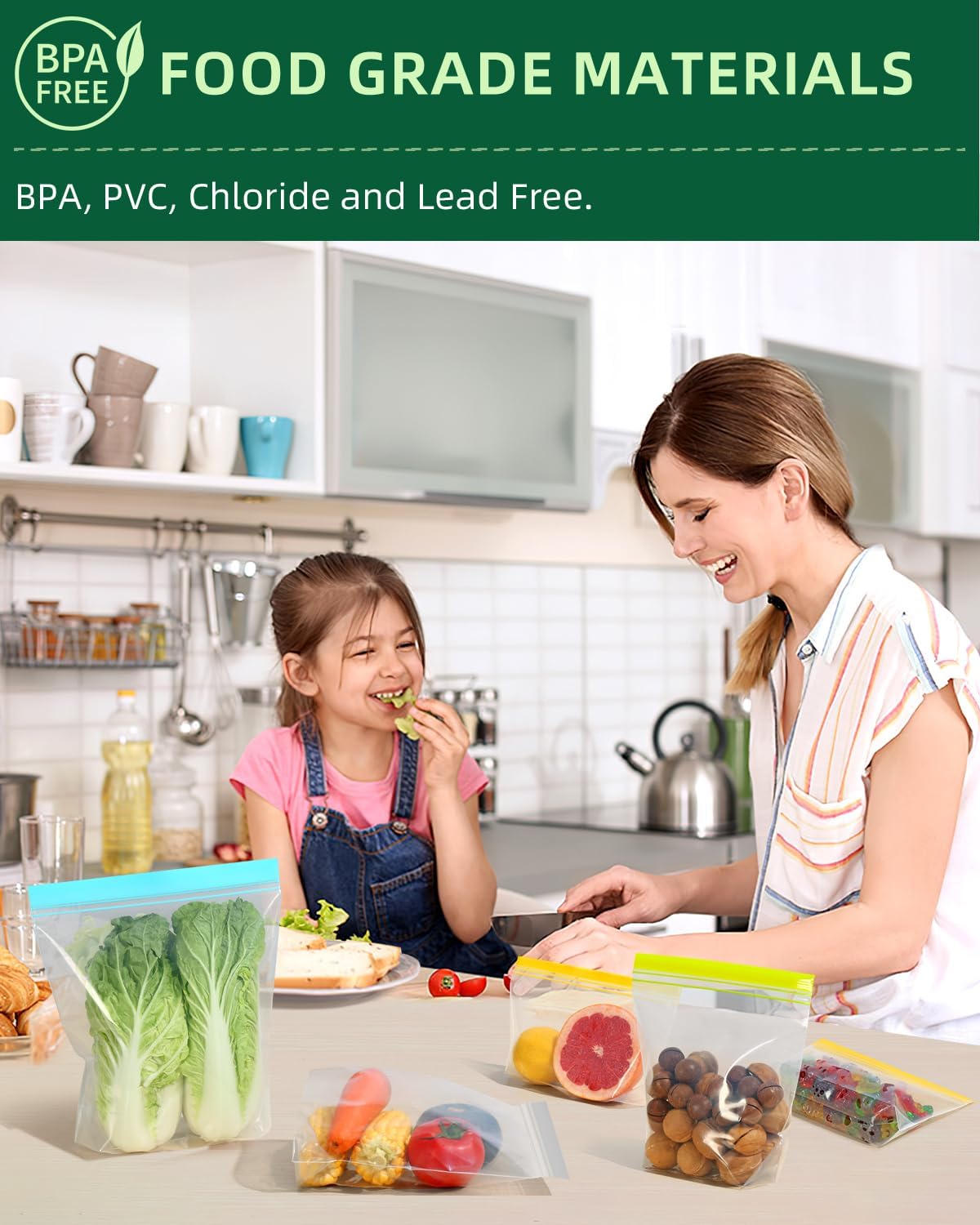 - FOOD GRADE & STAND UP: Choose Lerine brand's TRULY food-grade freezer bags. Made of food-grade PE material that is PVC, BPA, Chloride and Lead free. Healthy and safe for family and earth.They can be used as flat bags or stand up bags thanks to the special foldable bottom design, and are much more lightweight & portable than silicone freezer bags.Perfect reusable freezer bags in home & kitchen or on the go.