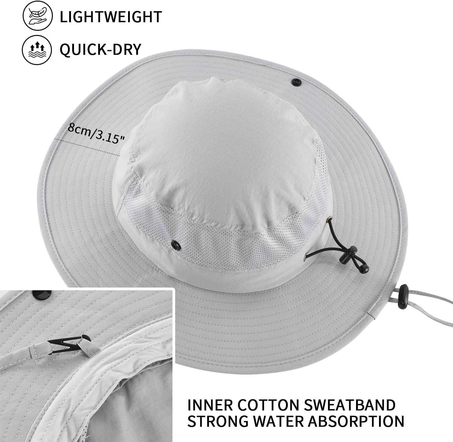 • Moisture wicking sweatband for keeping dry, airy mesh provides good ventilation