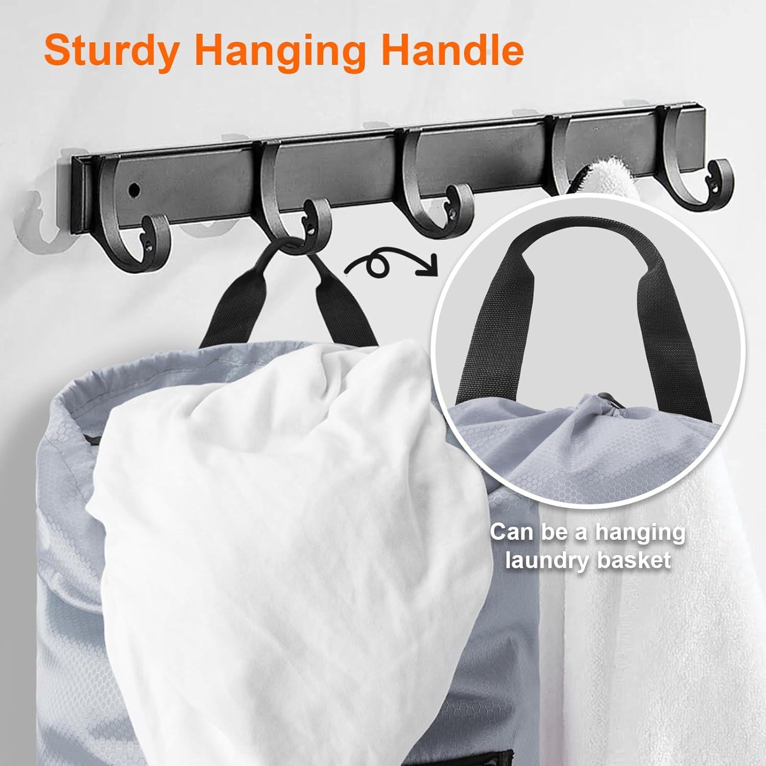 - EASY TO USE - The top of the backpack laundry bag is designed with a durable webbing handle, which can also be used as a hanging loop for easy hanging. It can be hung on the door or wall to serve as a practical laundry basket to collect dirty clothes.