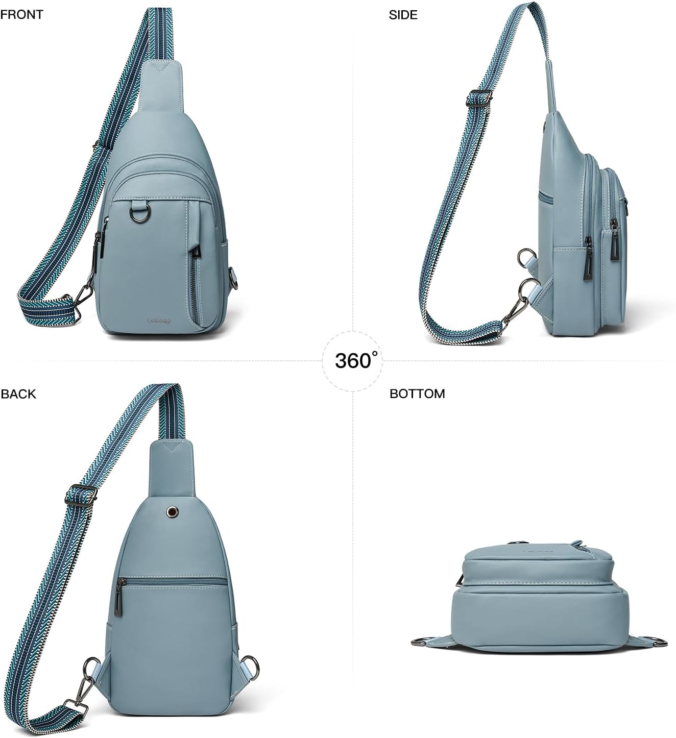 • Premium Material: Our new cross body bag for woman is made of premium faux leather, the chest pack's body and shoulder straps are reinforced with sturdy stitching for durability.An earphone hole on the back pocket enables you to enjoy music easily.