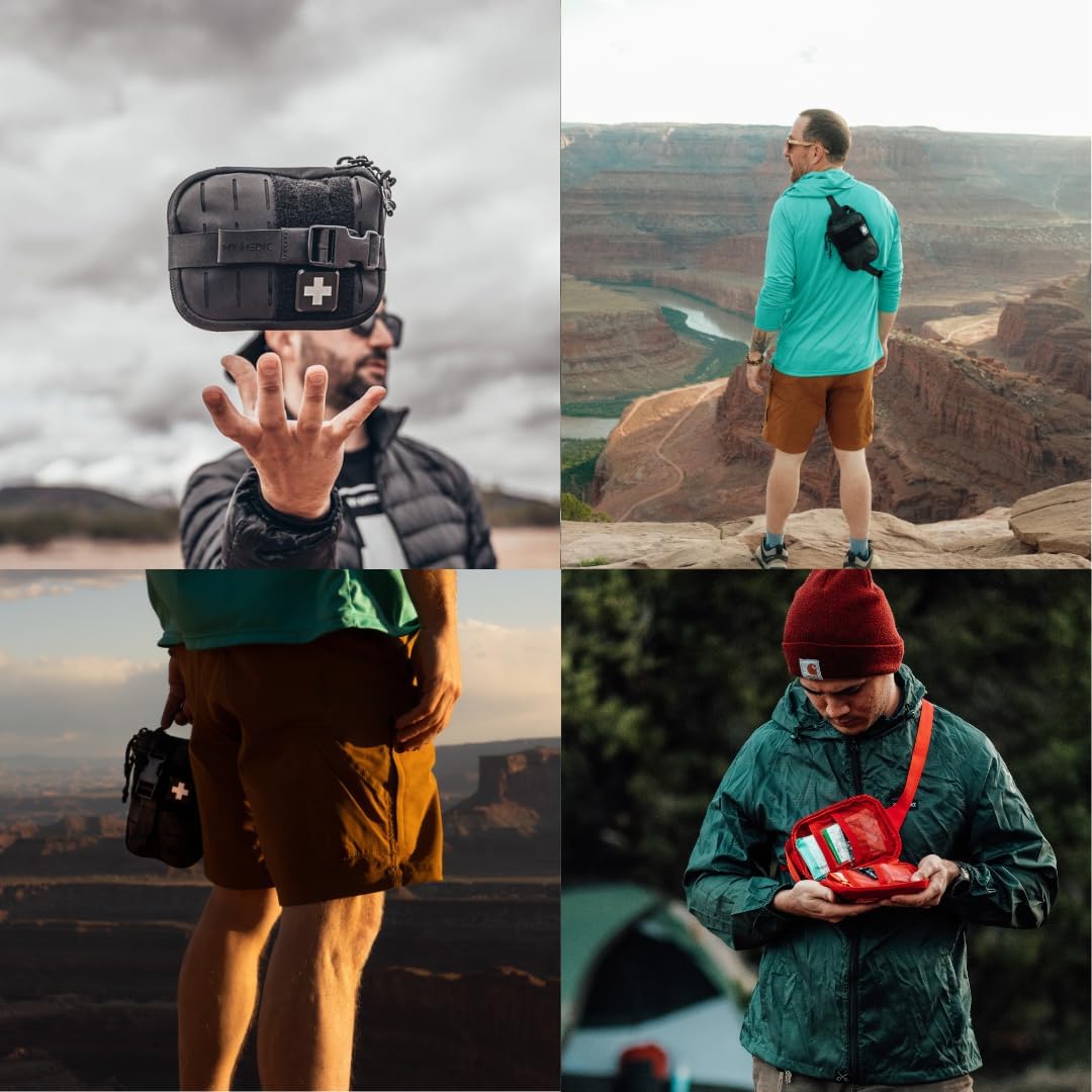 - COMPACT SURVIVAL KIT -This small first aid kit, equipped with over 45+ life-saving supplies, is a camping essential for both minor and severe injuries. Ensure you have the necessary camping supplies with our first aid kit for camping.
