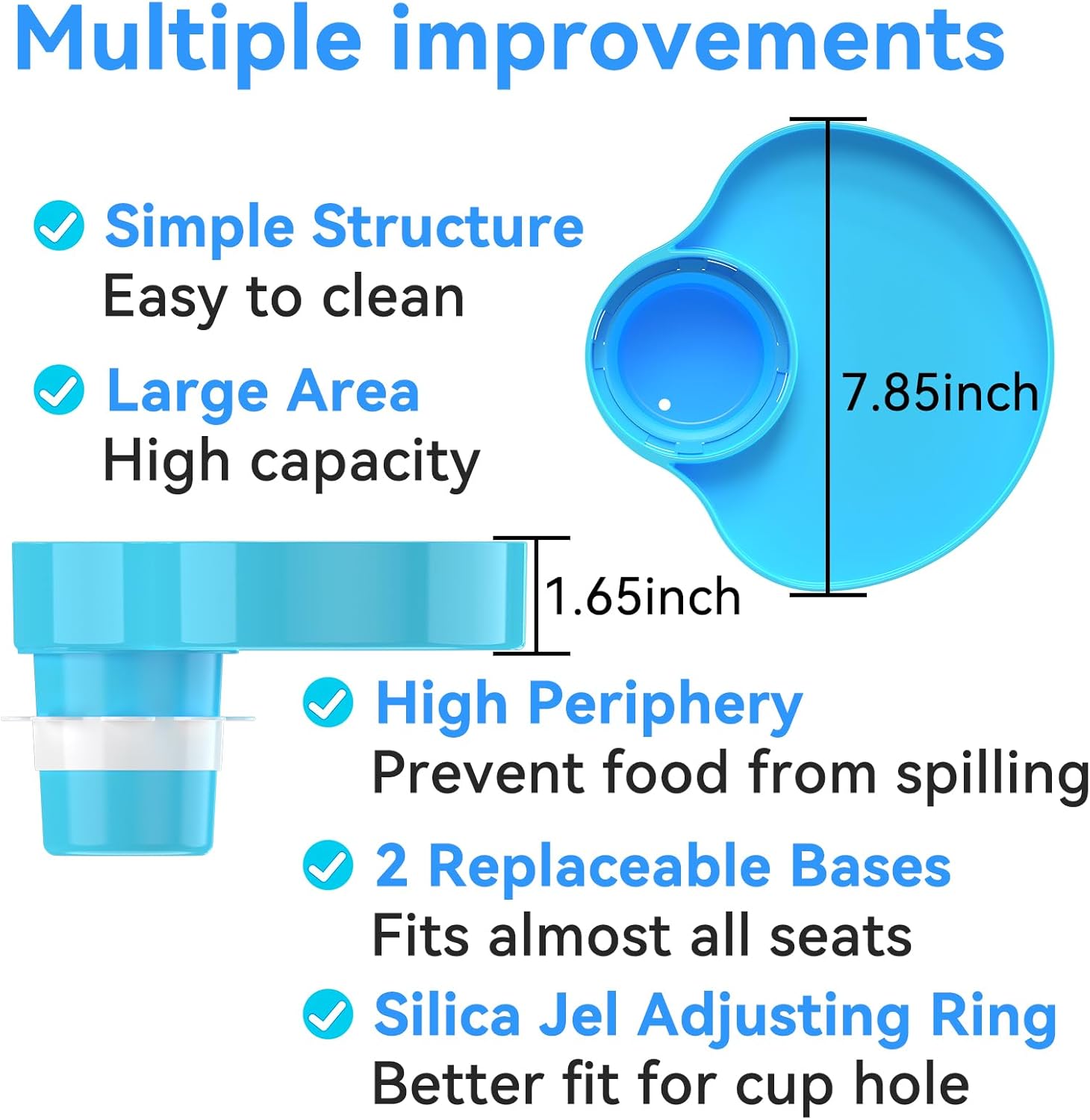 - [Big volume] The car seat food tray diameter up to 7.85 inches,big volume can store more food and snack.(Sky Blue, 2 PCS)