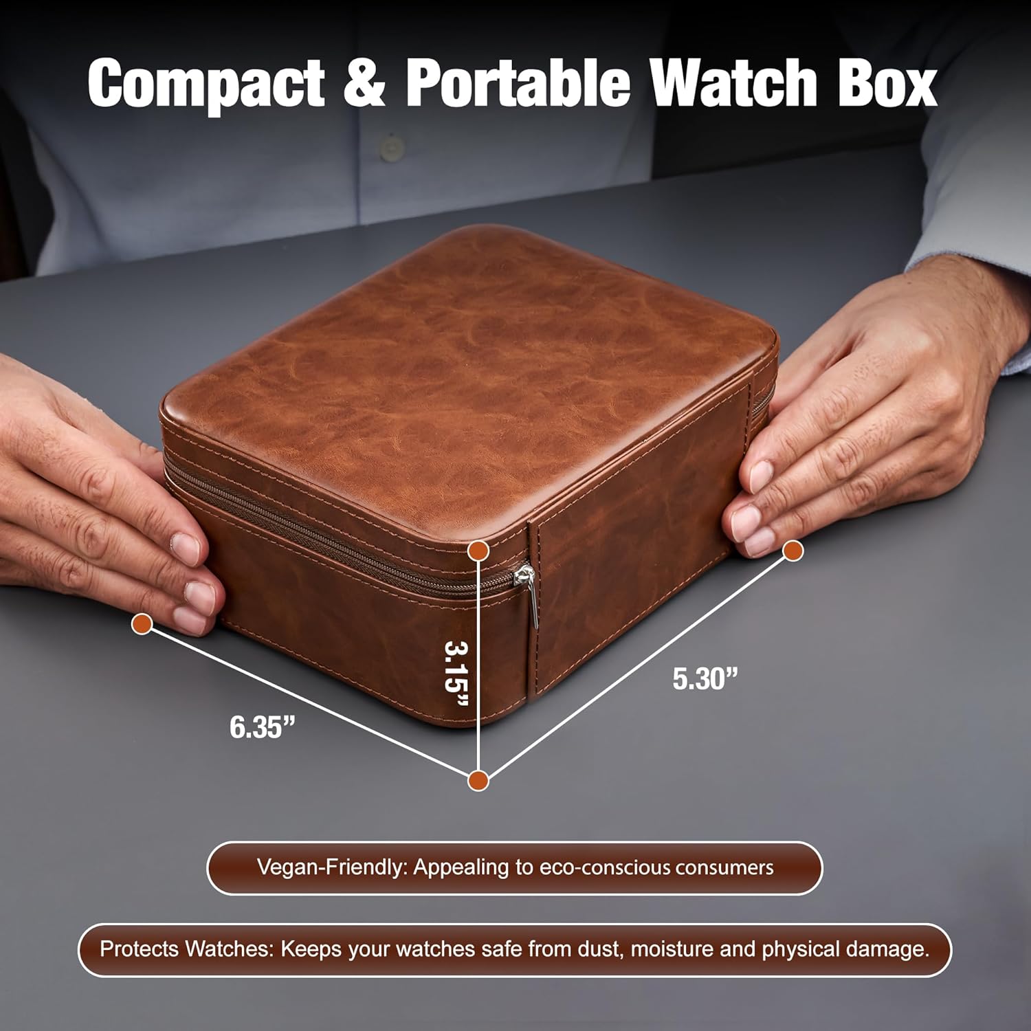 - ✅ Travel-friendly: This portable watch box is the perfect travel companion, keeping your watches secure and protected on the go. DIMENSIONS: 7.79 x 6.42 x 3.31 and 0.93 pounds