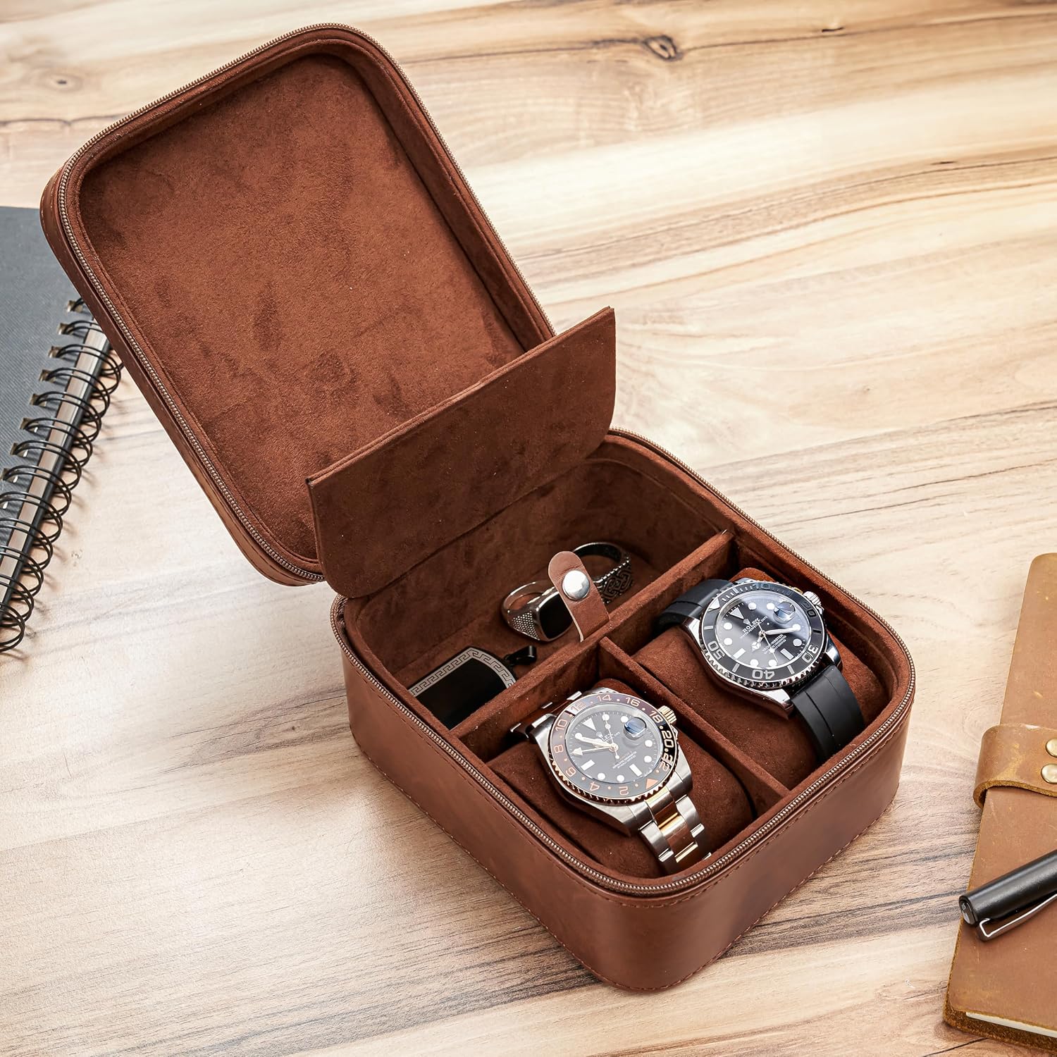 - ✅ Quality Craftsmanship: Designed with attention to detail, 2 slot travel watch box boasts exquisite workmanship. Made from high quality artificial leather and lined with premium soft velvet, this travel watch organizer is built to last. It keeps your valuables safe and secure while presenting them beautifully.