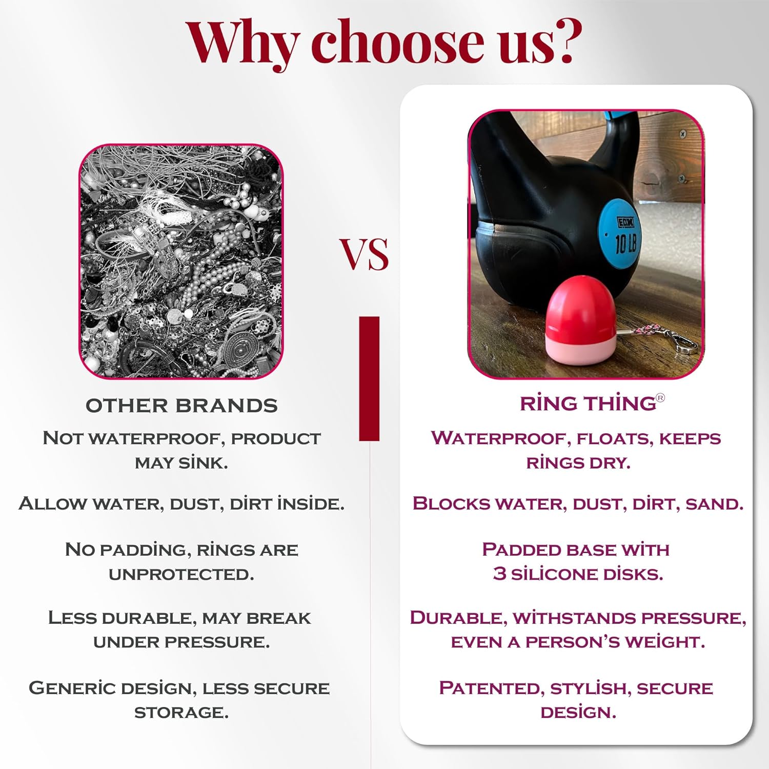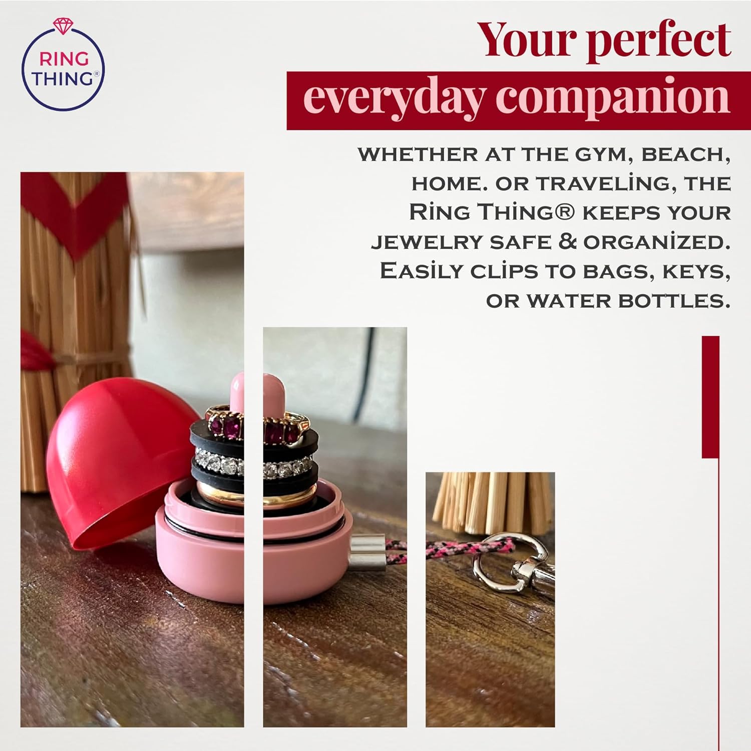 RING THING - Ring Holder Keychain, Jewelry Organizer and Storage, Portable Waterproof Ring Holder, Pill Box Keychain Container, Gym Accessory, and Travel Ring Case (Pink & Red)