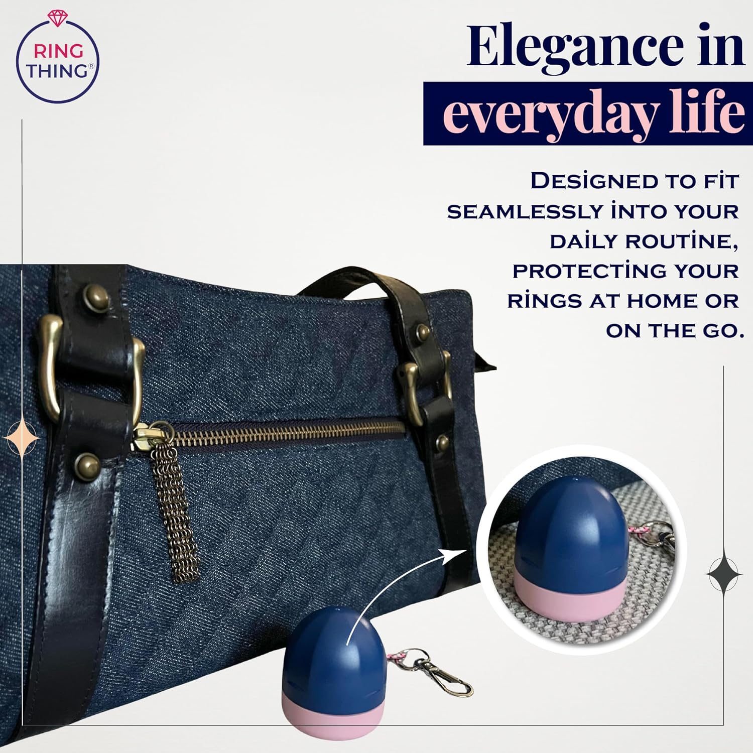 RING THING - Ring Holder Keychain, Jewelry Organizer and Storage, Portable Waterproof Ring Holder, Pill Box Keychain Container, Gym Accessory, and Travel Ring Case (Pink & Blue)