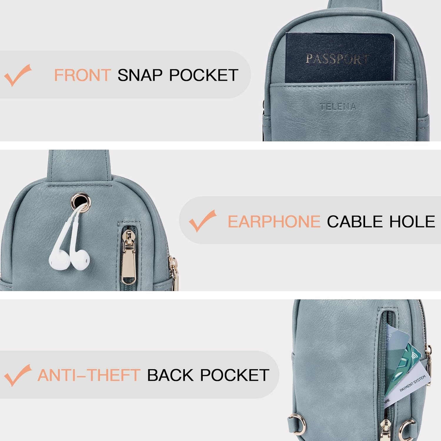 - Great Gifts Choice: Telena Sling bag is also a great idea as a special gift/present for women for her birthday; New Year; Valentine's Day; Easter; Mother's Day; Halloween; Thanksgiving and Christmas gifts