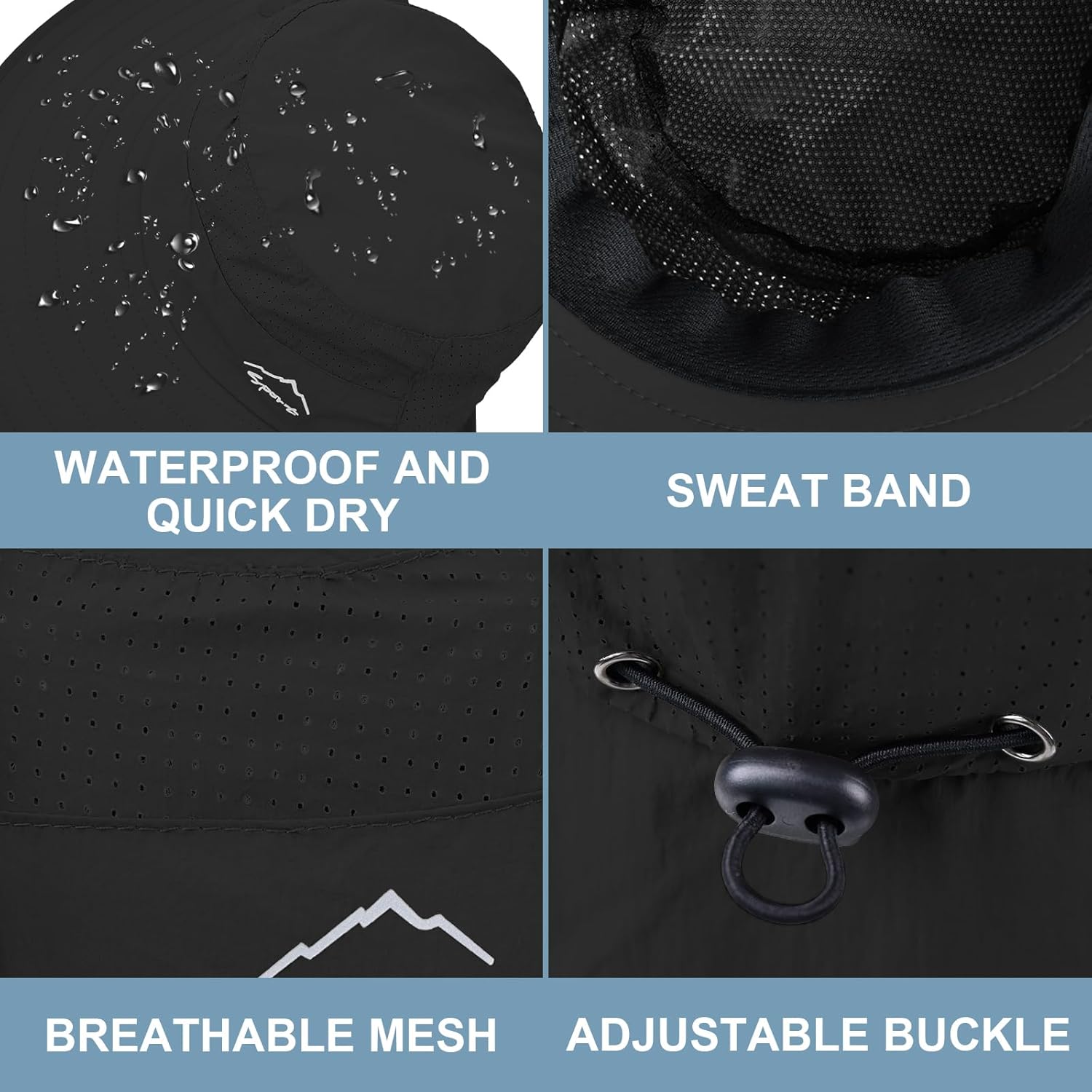 - WATERPROOF&SWEAT-ABSORBENT:The stylish fishing hat is waterproof and breathable. What's more, it is also sweat absorbent for which there is a sweat band inside. Taking with our sun protection hat to do what you want, ignoring the harsh sun and the light rain.