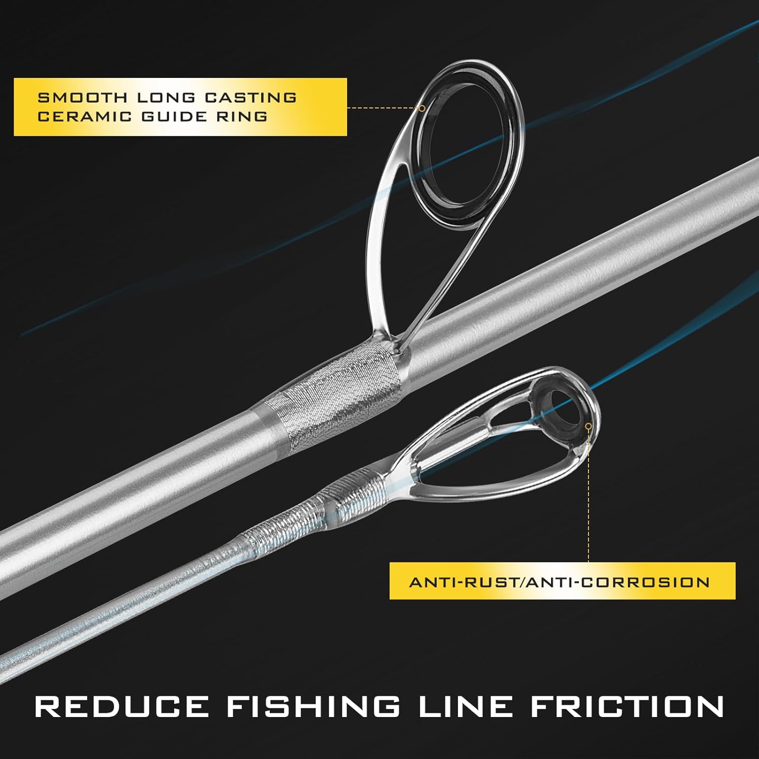 - HIGH DENSITY EVA HANDLE:The enhanced reel seat is crafted from premium ABS material with a corrosion-resistant aluminum cover, offering enhanced balance for the rod. The lightweight and comfortable high-density EVA grip provides all-day comfort and a secure hold, allowing users to fish with confidence throughout the day.