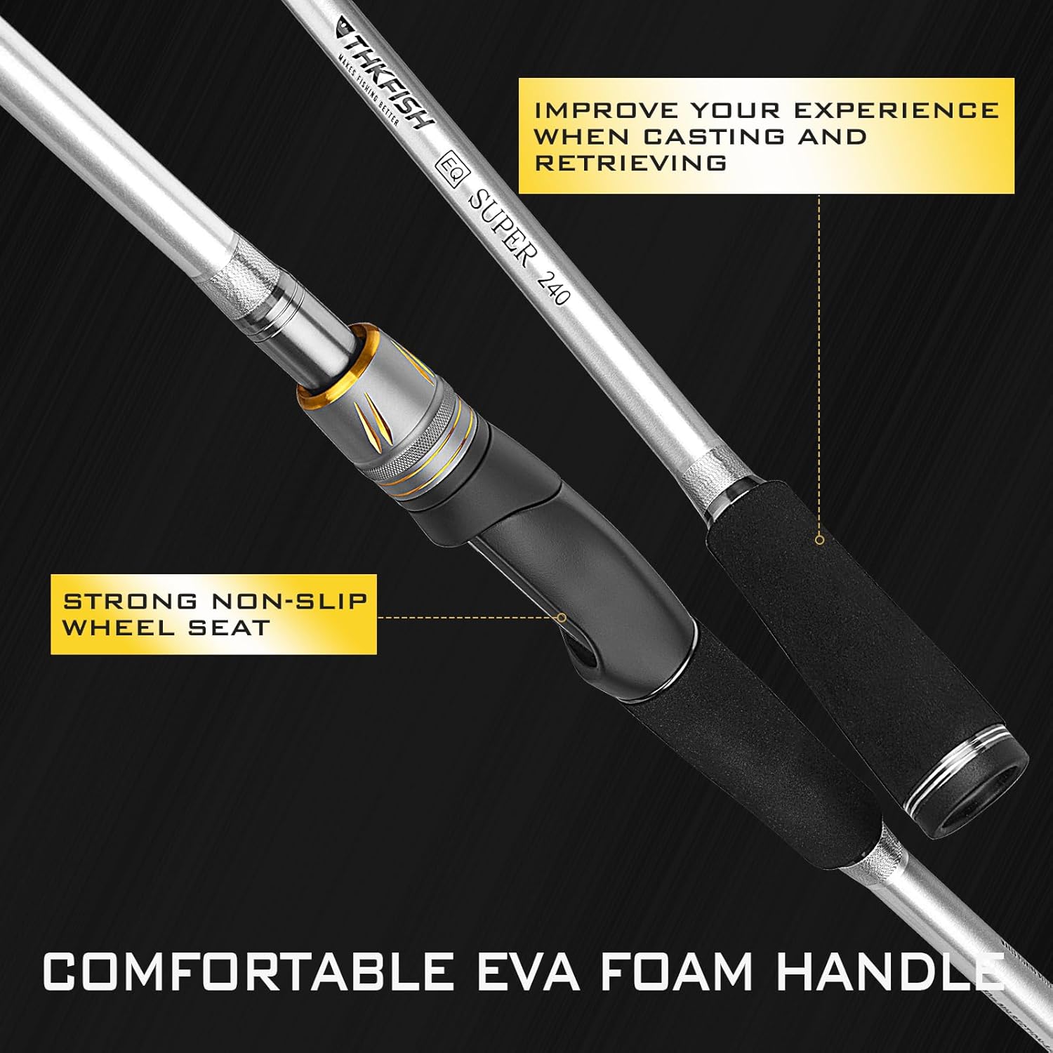 - ACCURATE Casting FISHING RODS: THKFISH ultralight fishing rod are equipped with high quality ceramic rings and welded stainless steel guides, the high-quality ceramic rings and stainless steel guides are precisely crafted to evenly distribute force on the rod, resulting in optimal casting distance and accuracy. The guides also reduce line friction and enhance line out efficiency,It allows for longer casting distances while maintaining high quality hook power.