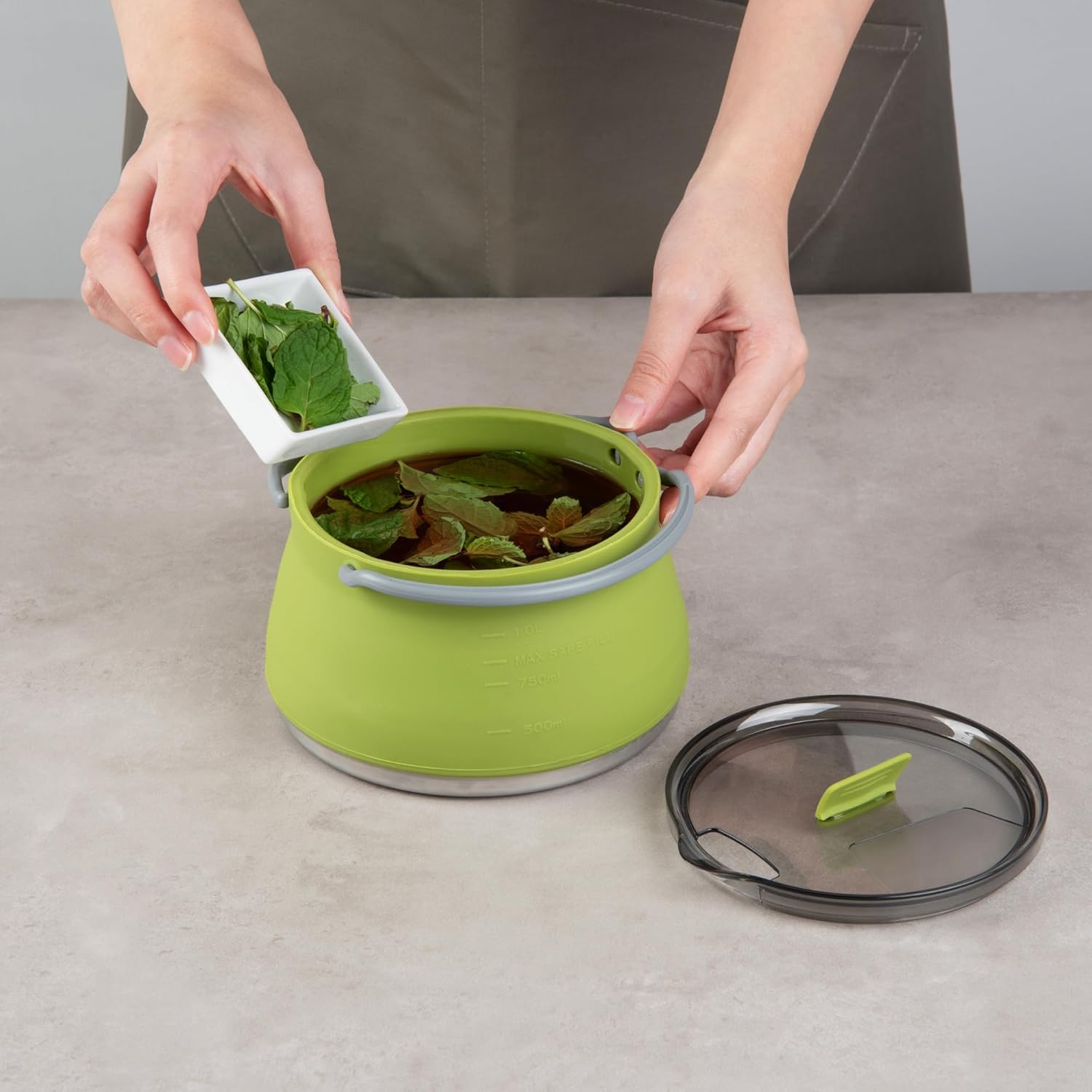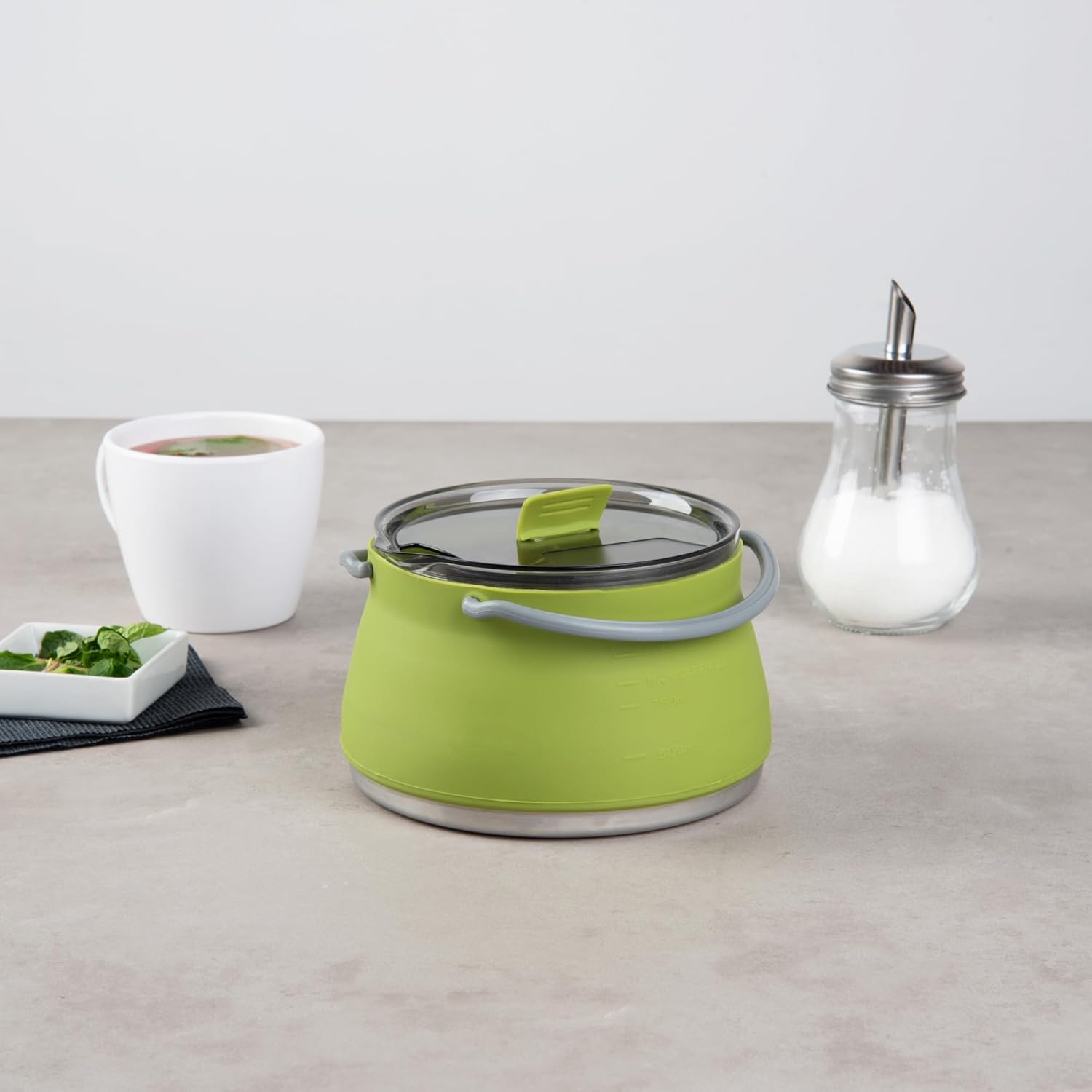 - GRADUATIONS FOR PRECISION: Take the guesswork out of your meals! This portable silicone kettle features graduations in both millimeters and cups on the inside. Cooking is made easy and precise.