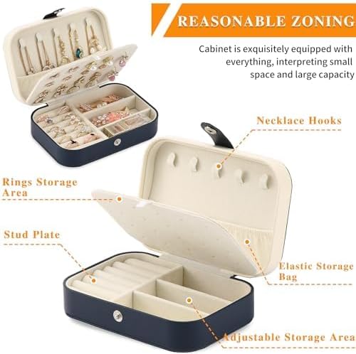 - 【Portability】Mini jewelry box size: L*W*H, (6.2in*4.3in*1.9in). As a small travel jewelry box, it is large enough to store jewelry, yet compact in size, saving space and easy to carry. It can be easily placed in a handbag or suitcase, keeping your jewelry organized and tidy.