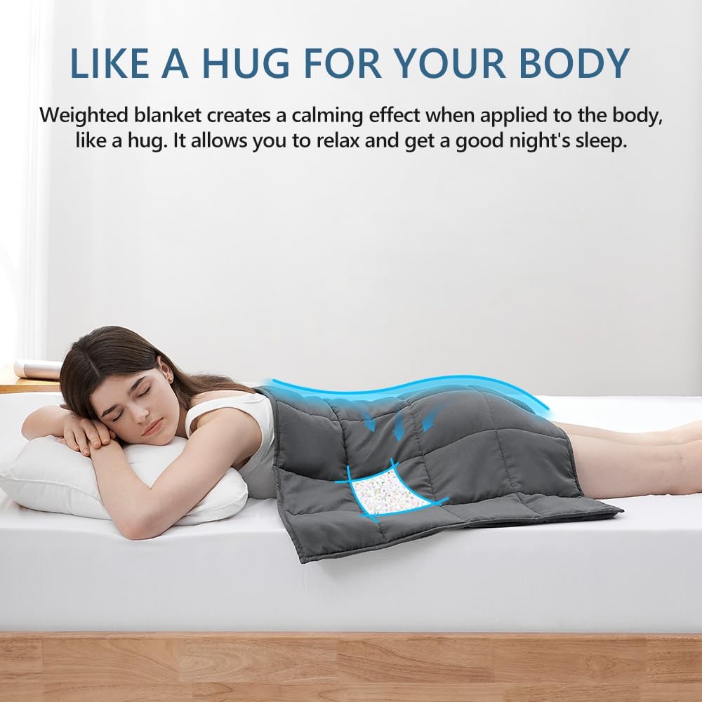 - Meet Your Various Needs: Our weighted blanket is perfect for adults, seniors, and pets. It can be used as a knee blanket for people with leg discomfort. When you are easily distracted at work, you can put heavy blanket over your shoulders, it can help you improve concentration. Body weighted blanket 5 lbs is perfect for people with "sensory needs" or "first-time users". Our weighted blanket is also a good choice if your pets are afraid of "rainy days"
