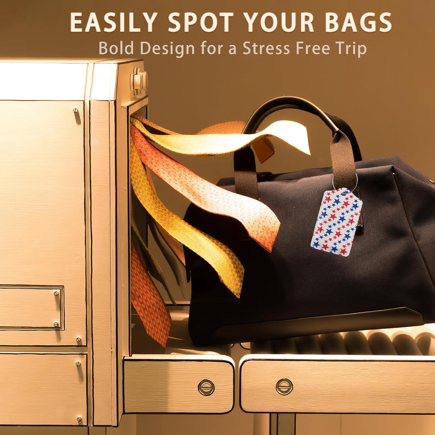 - Privacy Protection:American patriotic Stars USA flag luggage tags with a privacy back cover to hide your owner information. Avoid prying eyes, improve security, so that you don't have to worry about personal information leakage,and enjoy a pleasant trip.