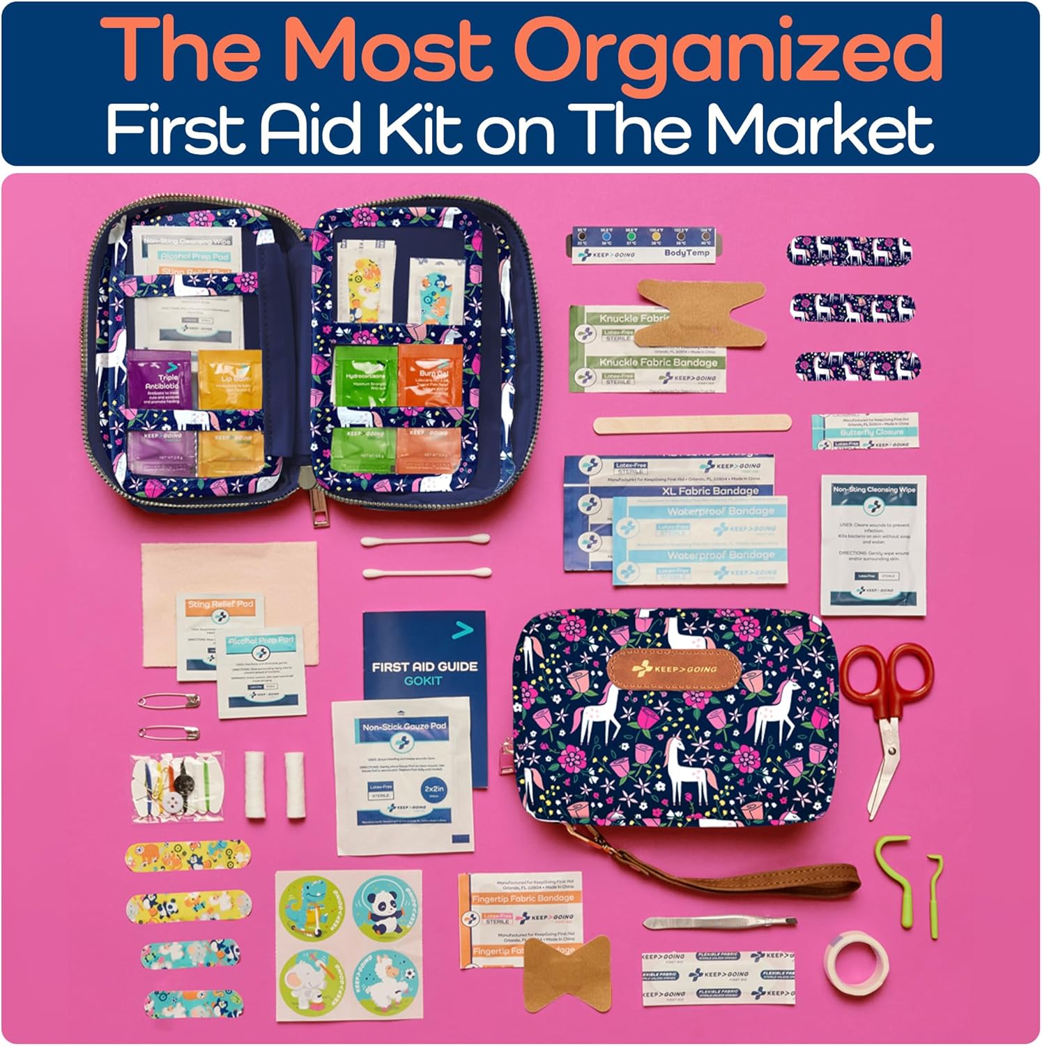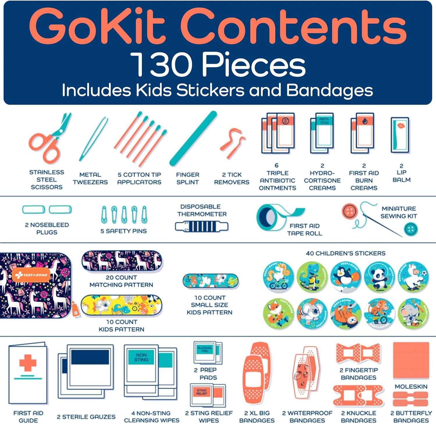 KeepGoing Travel First Aid Kit for Kids – 130 Pc. for Car, Home, Purse, Diaper Bag & Backpack with Latex-Free Bandages - Mini First Aid Kit Travel Size TSA-Approved