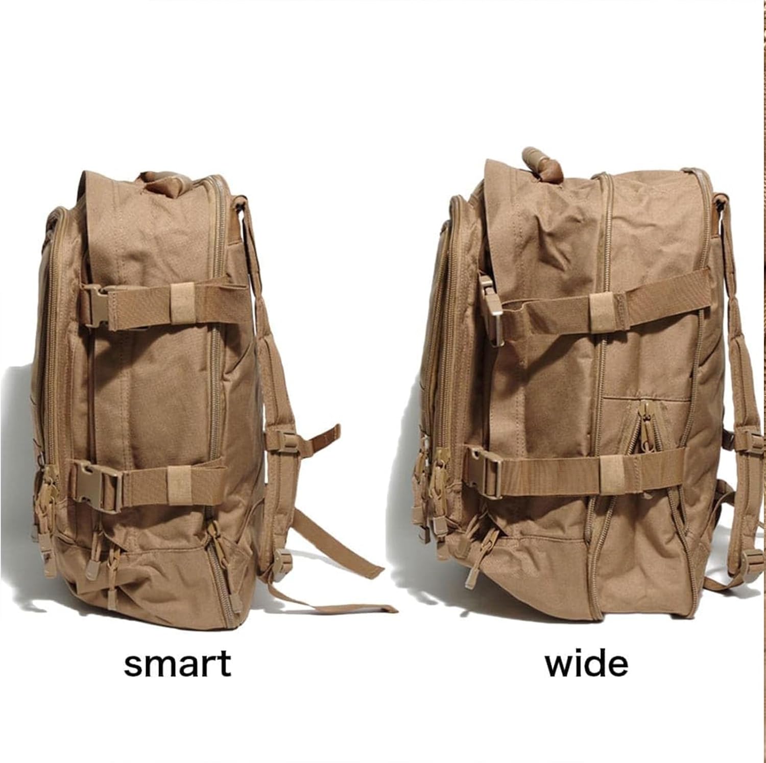 - 【Expandable Tactical backpack size】20 "; x 15" x 8" WHEN FULLY EXTENDED; Capacity: 39~64 Liters. Weight:2.7 lbs. It has multiple zipper pockets and compartments so you can easier organize and find yours belongs.