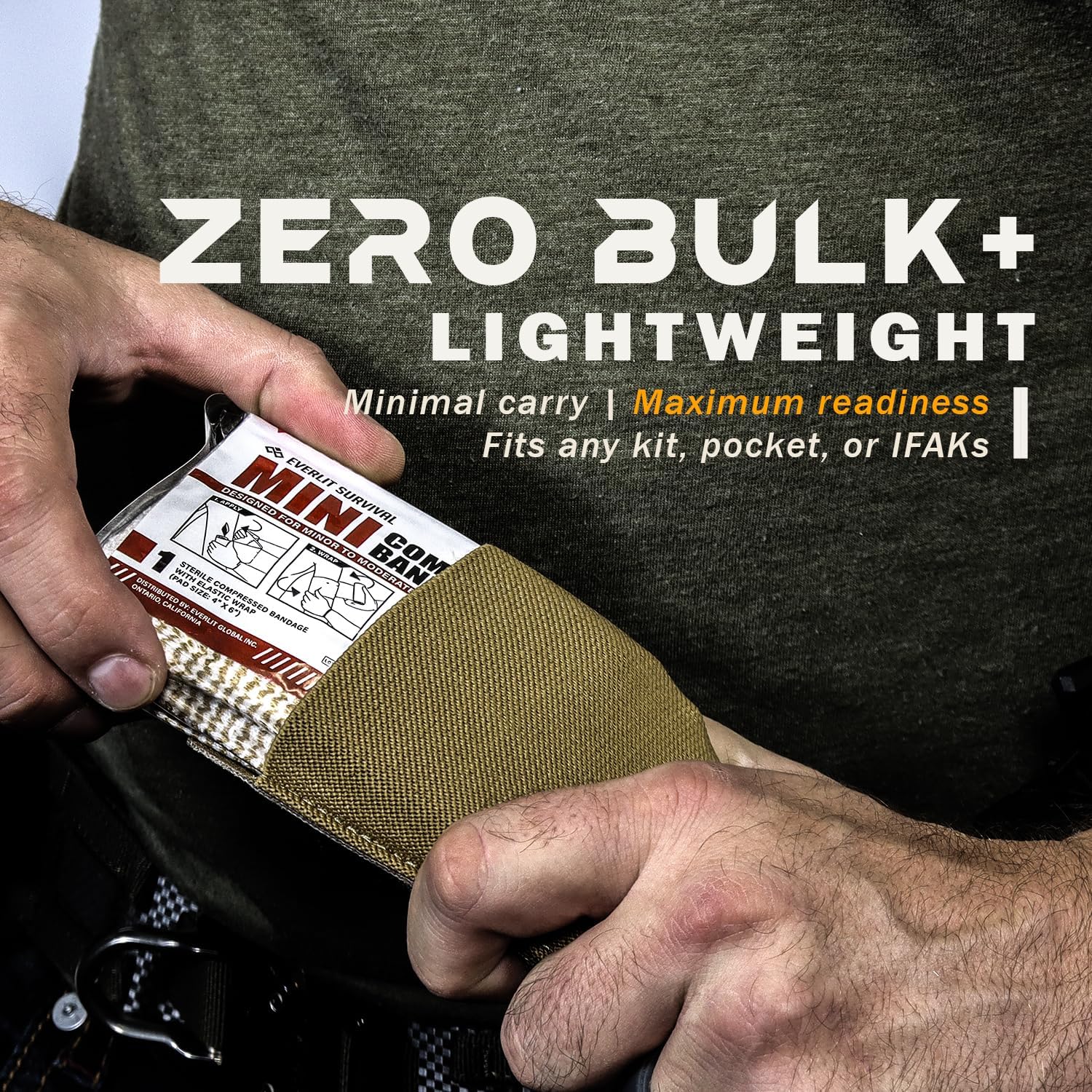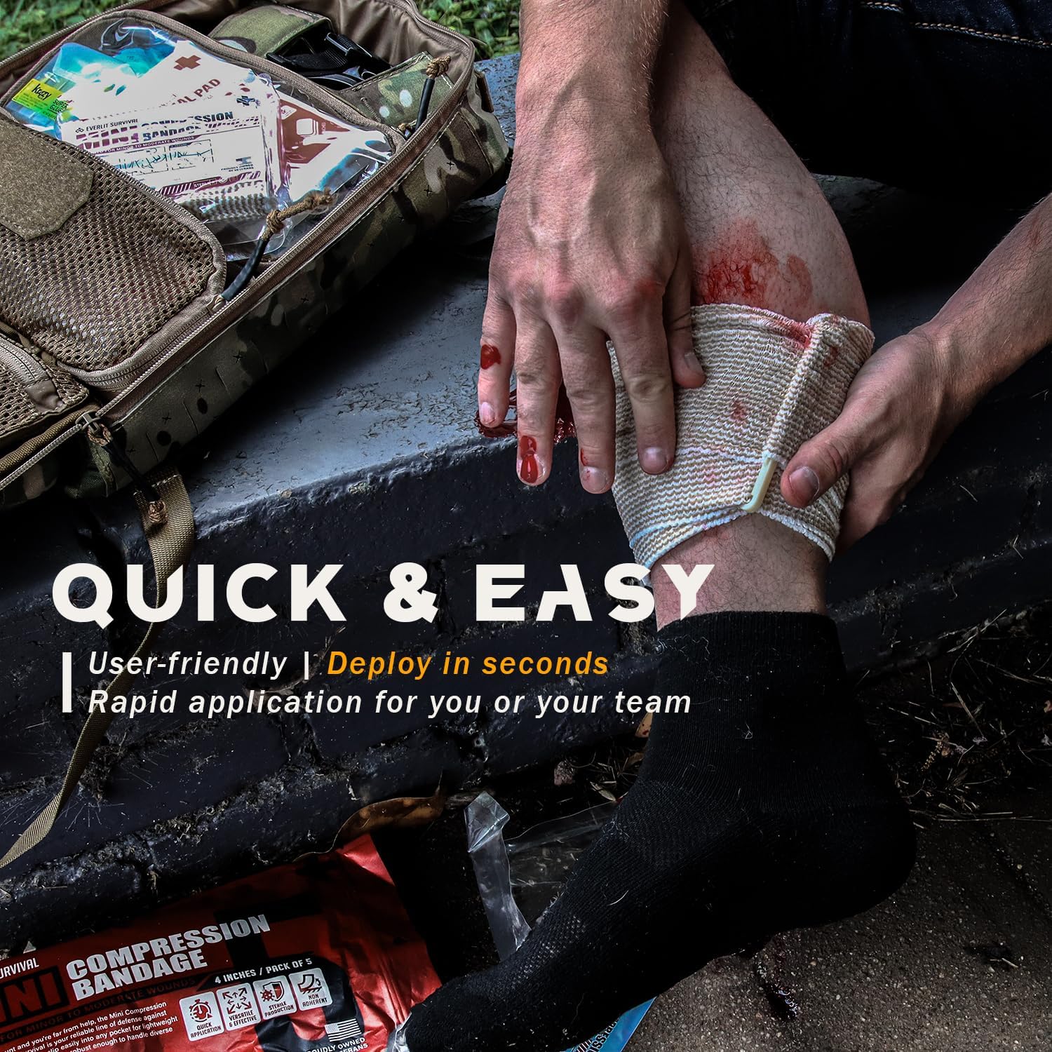 - ✅【Self-Application, Rapid Hemorrhage Control】 The Everlit Mini Emergency Bandage quickly and effectively stops bleeding from traumatic wounds, making it ideal for both professional and non-professional caregivers