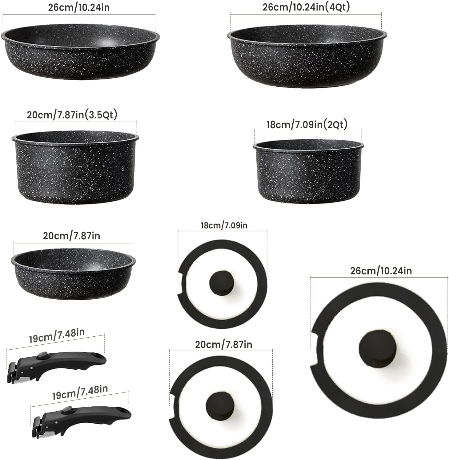 - Best storage:Stackable pots and pans and detachable handles save up to 70% space and can be stored in a cupboard or RV. Keep pots and pans neatly stacked in cabinets or drawers; Suitable for compact Spaces, RVS and campers.