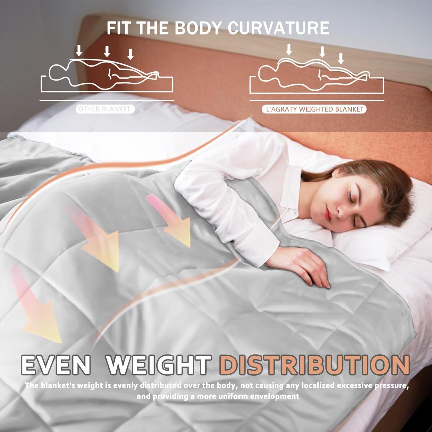 L'AGRATY Weighted Blanket - 60"x80", 15lbs Soft Breathable Heavy Blanket with Minky Material and Glass Beads for Adults, All-Season