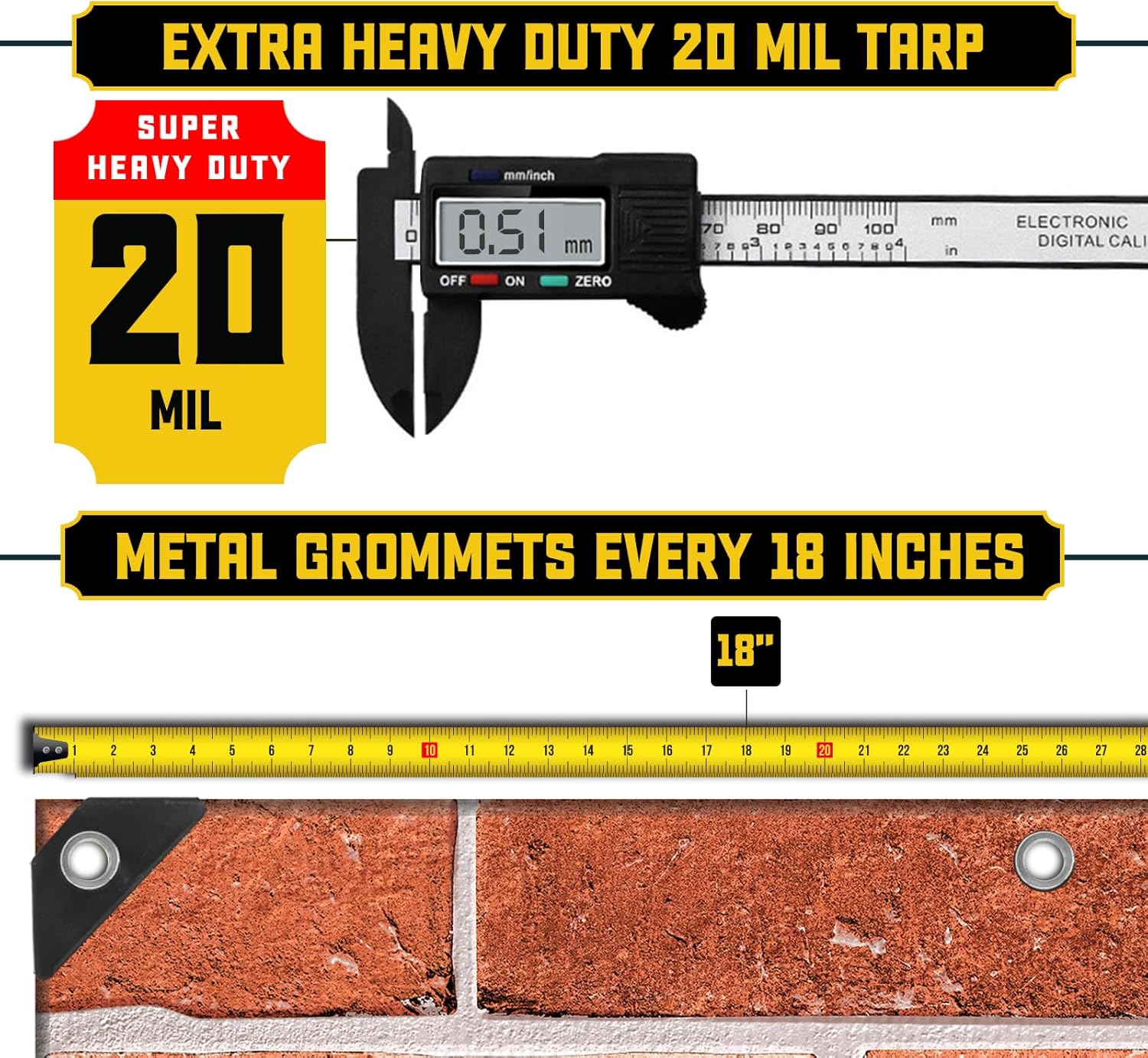 Core Tarps Extreme Heavy Duty 20 Mil Tarp Cover, Waterproof, UV Resistant, Rip and Tear Proof, Poly Tarpaulin with Reinforced Edges for Roof, Camping, Patio, Pool, Boat (Bricks/Black 12′ X 16′)