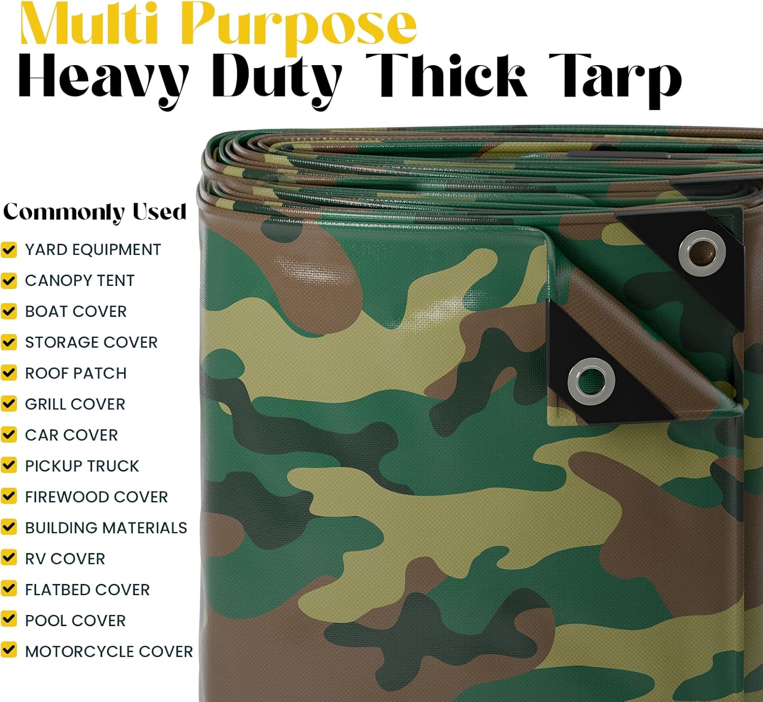 Core Tarps Extreme Heavy Duty 20 Mil Tarp Cover, Waterproof, UV Resistant, Rip and Tear Proof, Poly Tarpaulin with Reinforced Edges for Roof, Camping, Patio, Pool, Boat (Camouflage/Green 6′ X 8′)