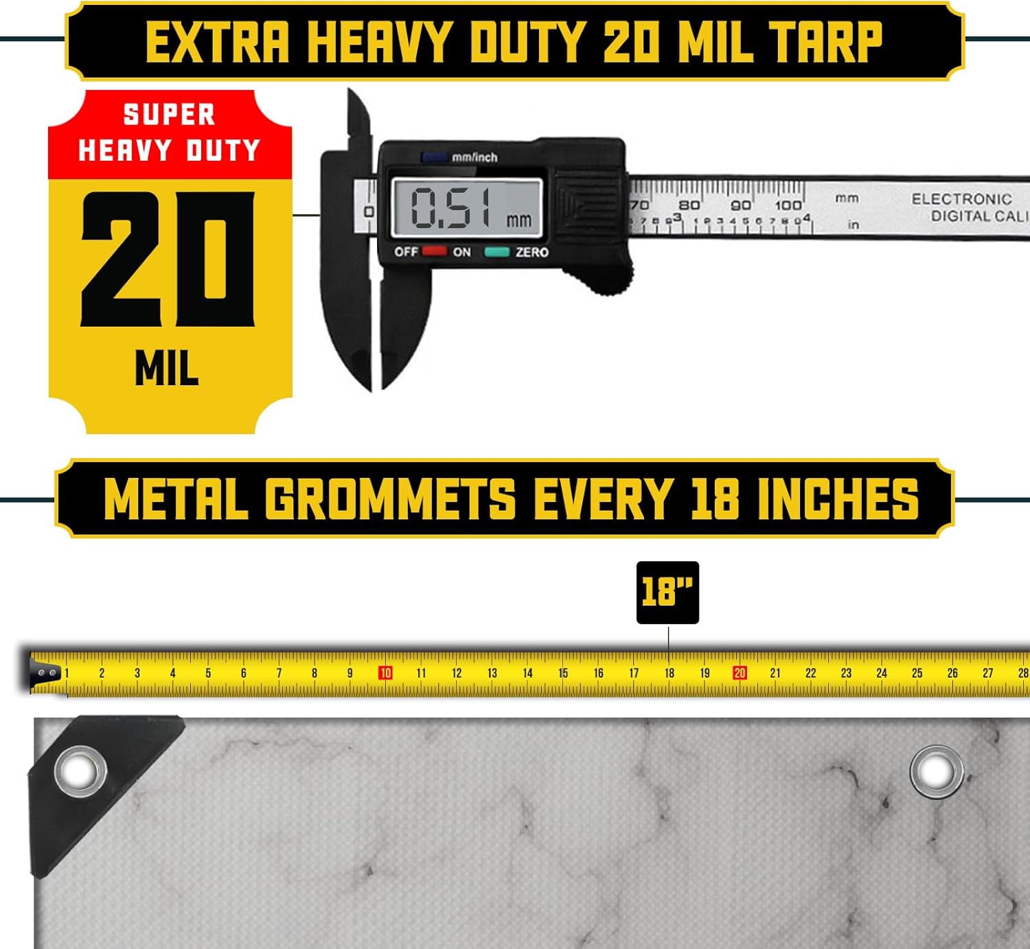 Core Tarps Extreme Heavy Duty 20 Mil Tarp Cover, Waterproof, UV Resistant, Rip and Tear Proof, Poly Tarpaulin with Reinforced Edges for Roof, Camping, Patio, Pool, Boat (Marble/White 10′ X 20′)