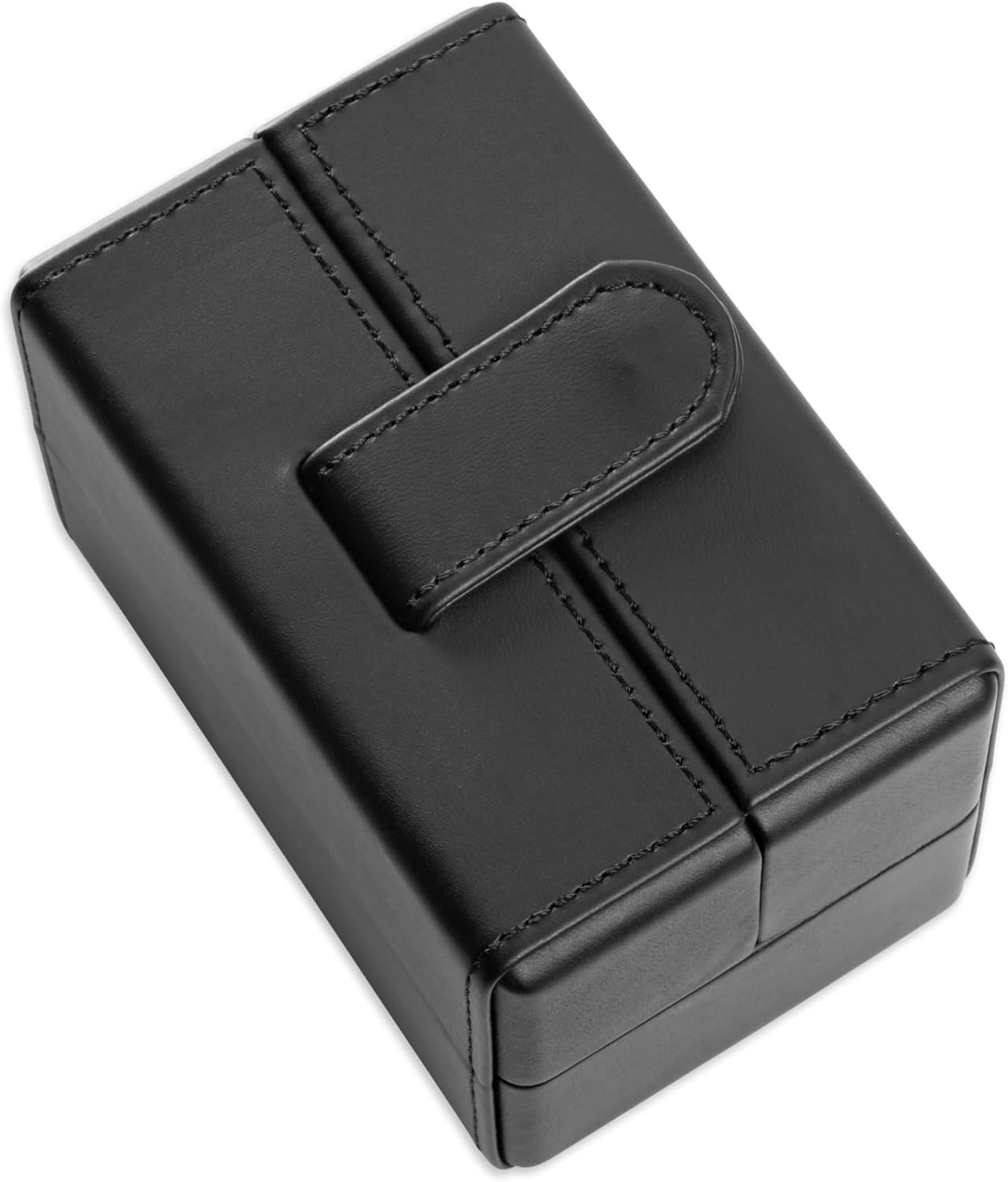 - [ Interior ] - This travel case is lined with high quality microfiber; giving the interior a soft, suede feel. Microfiber is noted for its durability making it the perfect backdrop for your watches to rest safely. The microfiber interior is combined with snap closures, making your watches safe and secure.