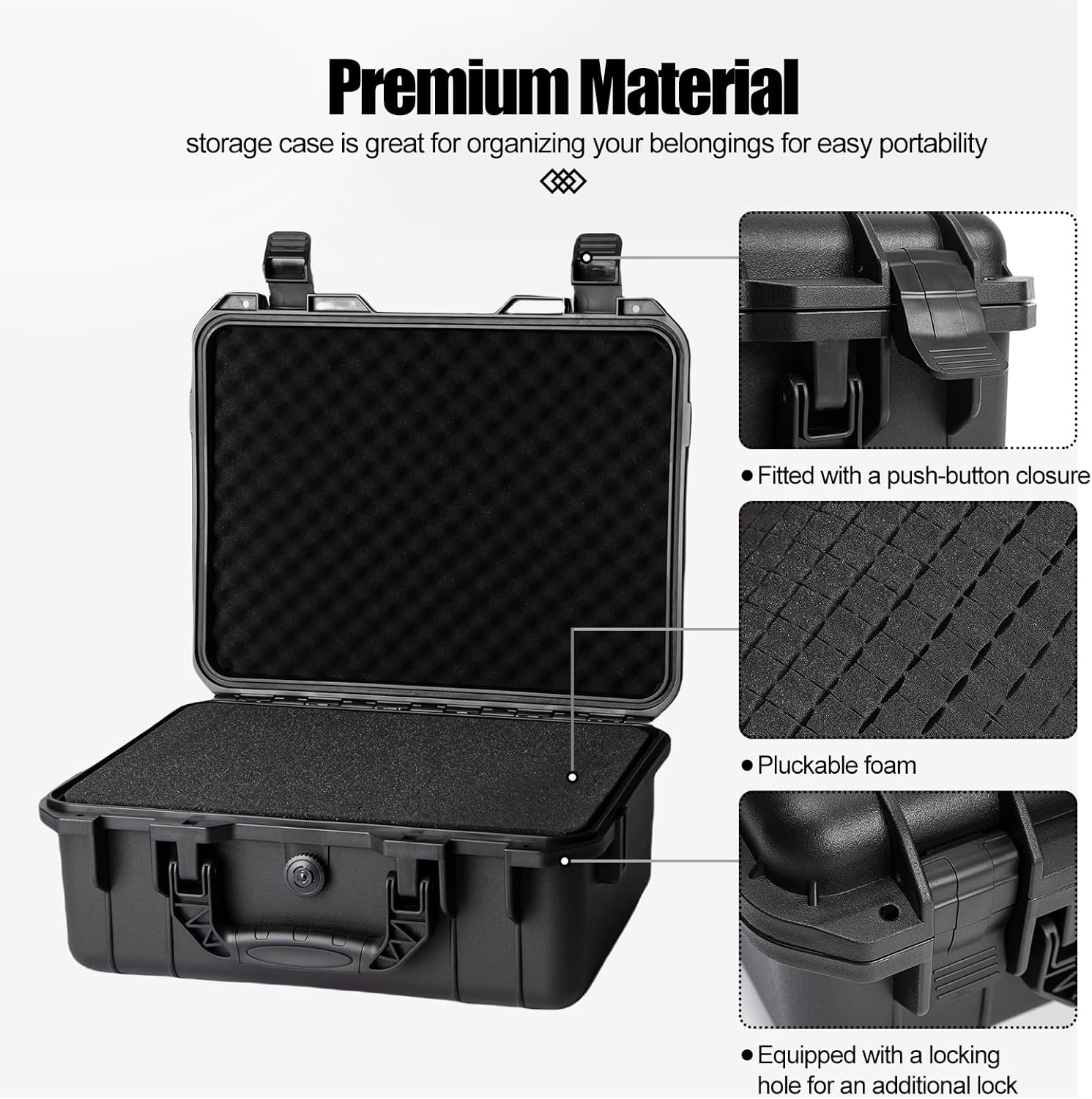 - Durability and Protection: the hard case is crafted from PP and glass fiber material; This robust construction design ensures your stored items are safeguarded from impact and water damage, extending their lifespan and preserving their quality