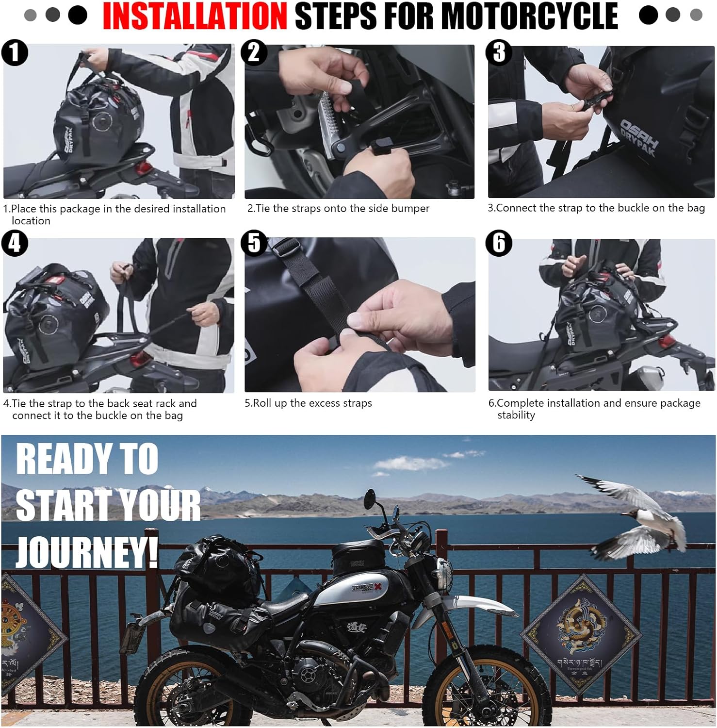 - MULTI FUNCTIONAL USE: This multifunctional motorcycle bag not only serves as a saddle bag for riding, but is also suitable for various scenarios, such as motorcycle camping, travel, and waterproof storage;Different capacities meet your various travel needs;It can accompany you in various scenarios, including motorcycles, scooters, bicycles, camping, commuting, and road trips