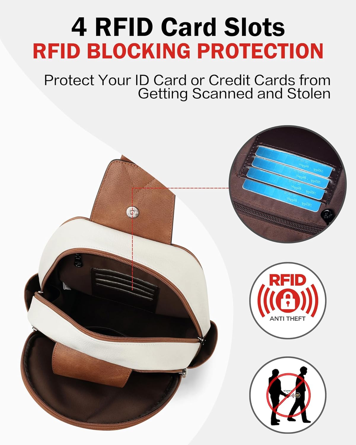 FADEON Large Sling Bag for Women, Leather Crossbody Purse Designer Anti Theft Sling Backpack, RFID Fanny Packs for Travel