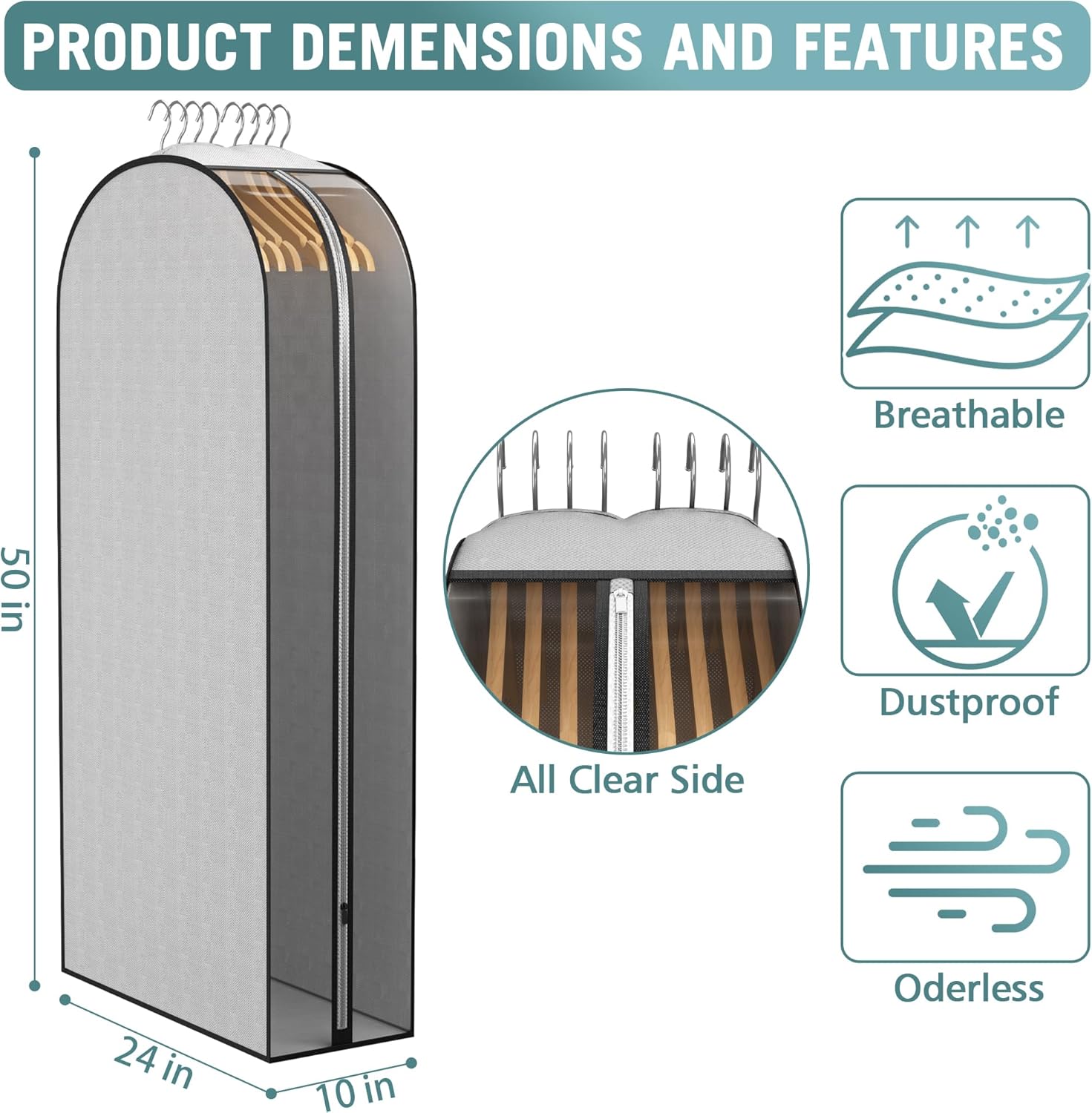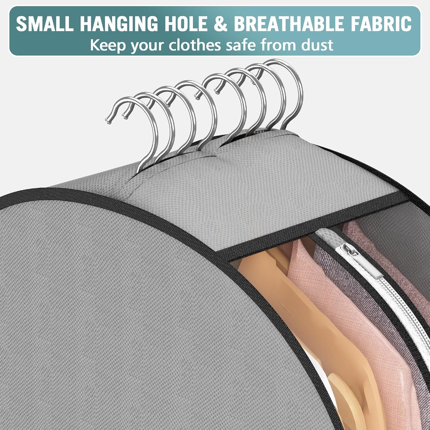 - Small Hanging Holes: The top hanger hole fabric overlapping stitching design, minimize the opening area to keep dust out, but also to ensure that the hanger easy to take
